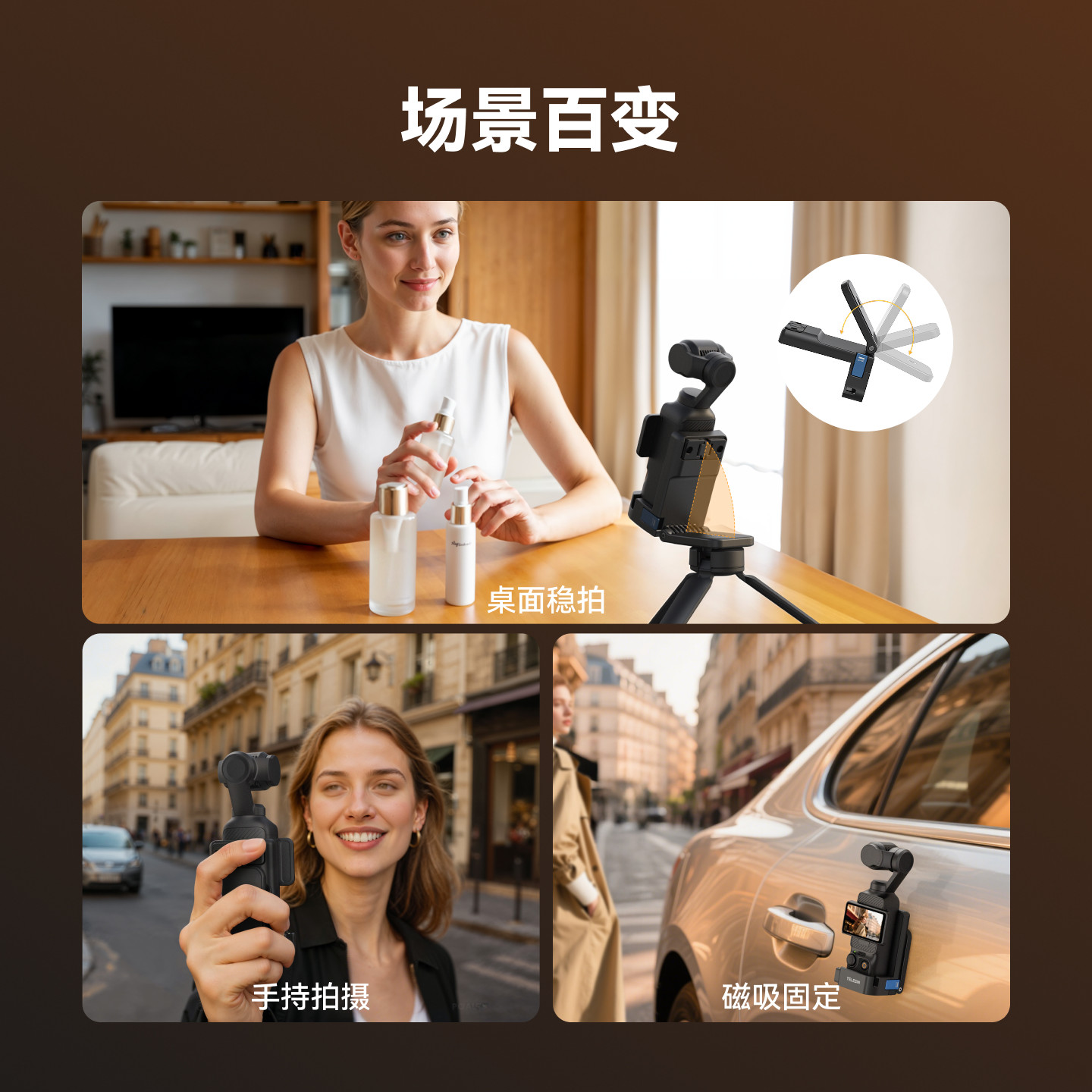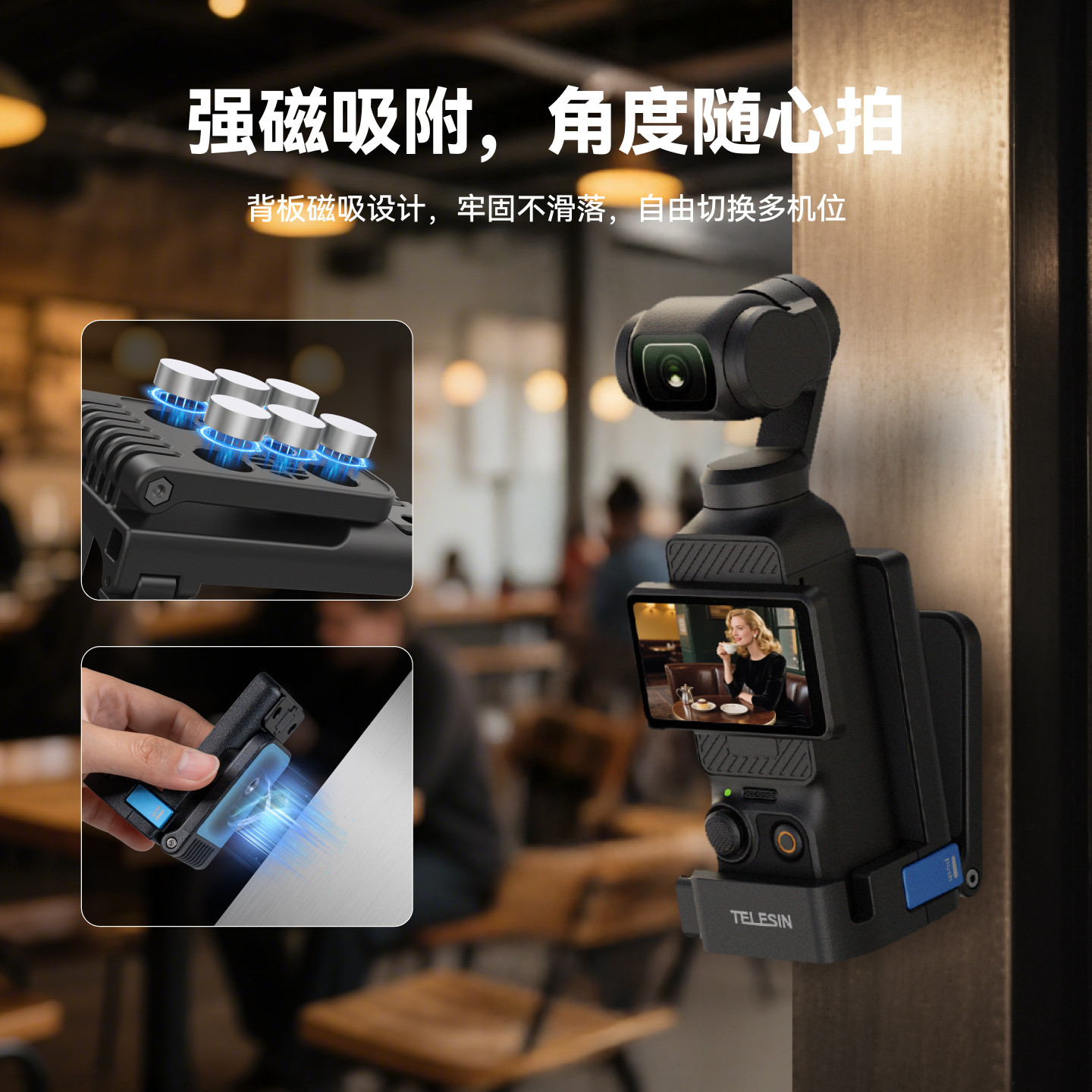 泰迅适配大疆Pocket3磁吸拓展支架多功能拓展框OSMO口袋云台运动相机桌面汽车固定冷靴拓展pocket3配件