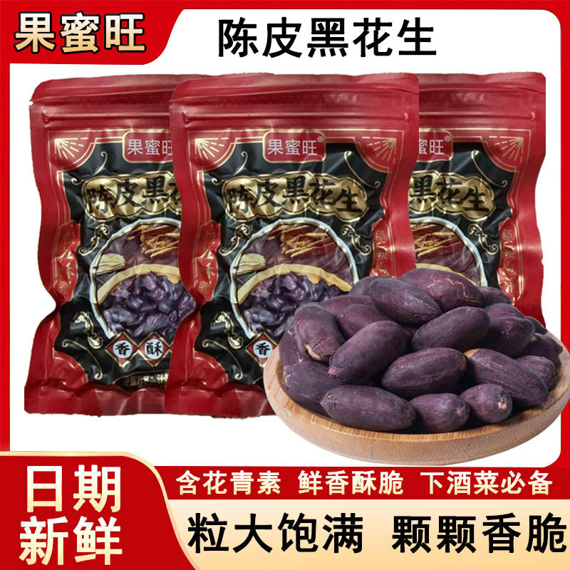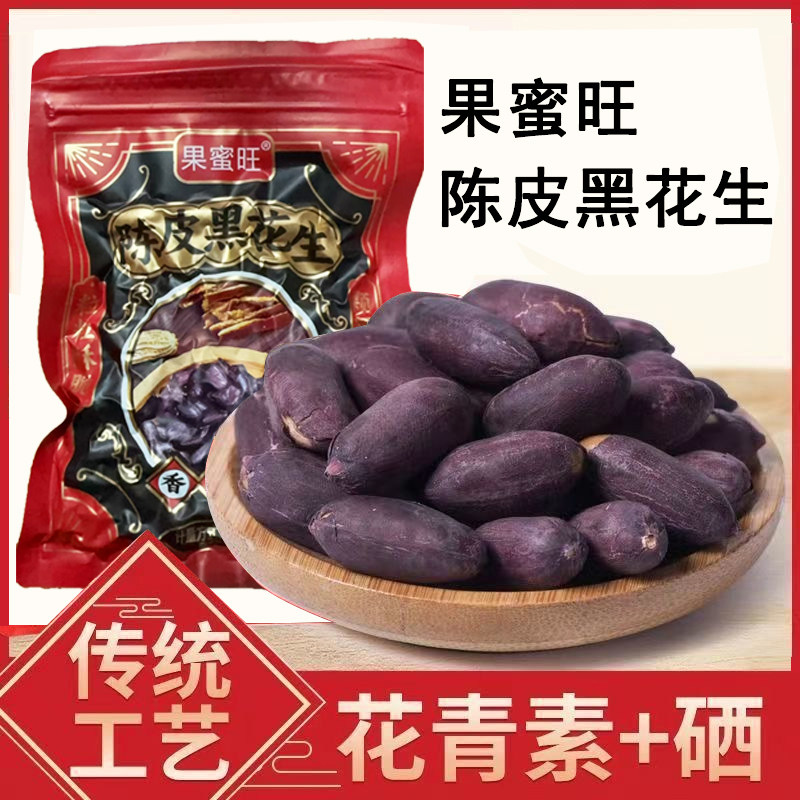 果蜜旺陈皮黑花生黑皮大颗酥脆含花青素富硒下酒菜坚果零食即食