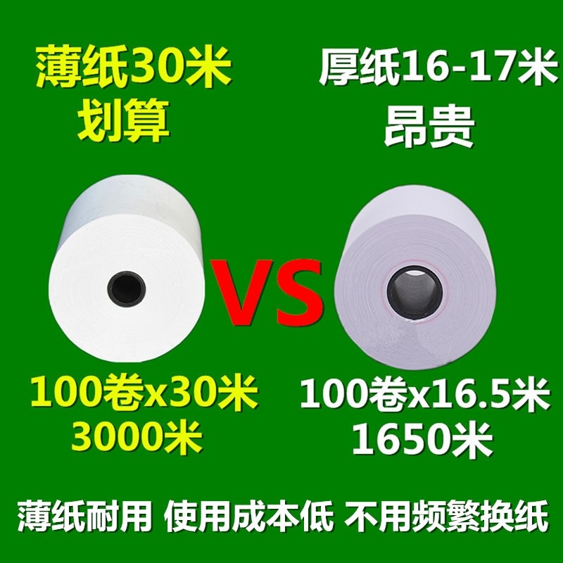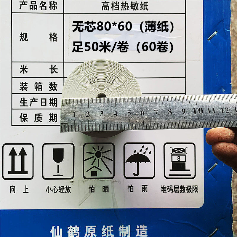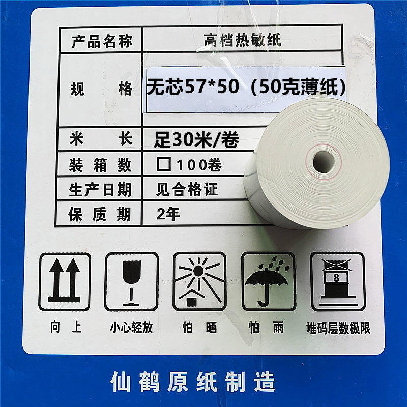 仙鹤原纸制造57x50热敏纸58mm30米薄纸美团外卖小票80*80米打印纸