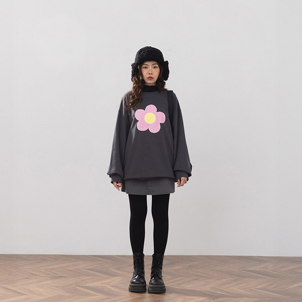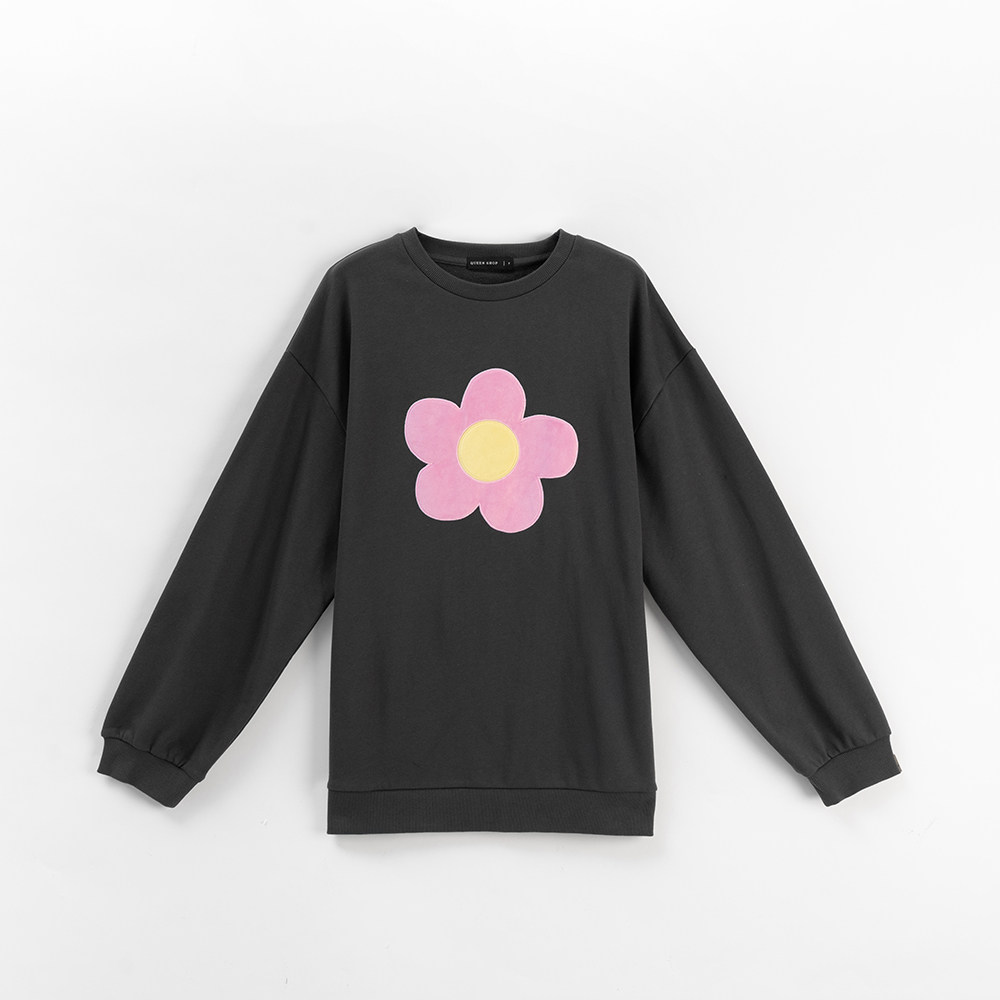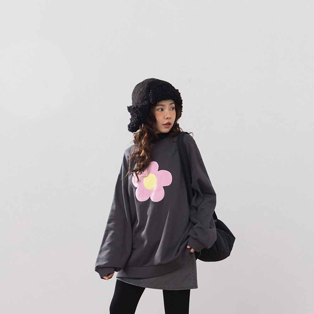 QUEENSHOP 2025秋冬新品女装立体磨毛花花长袖卫衣-深灰01099427