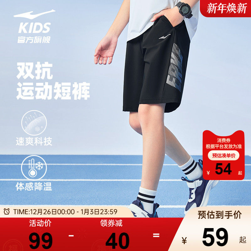 鸿星尔克童装儿童运动裤男童休闲短裤夏季五分裤中大童针织裤子
