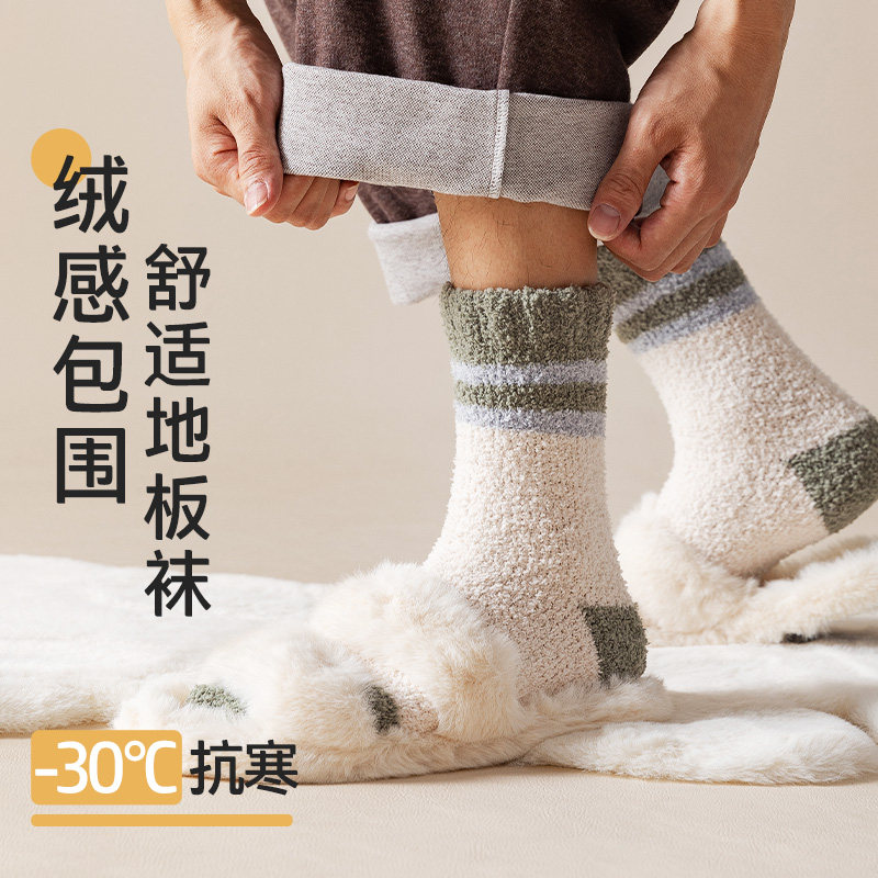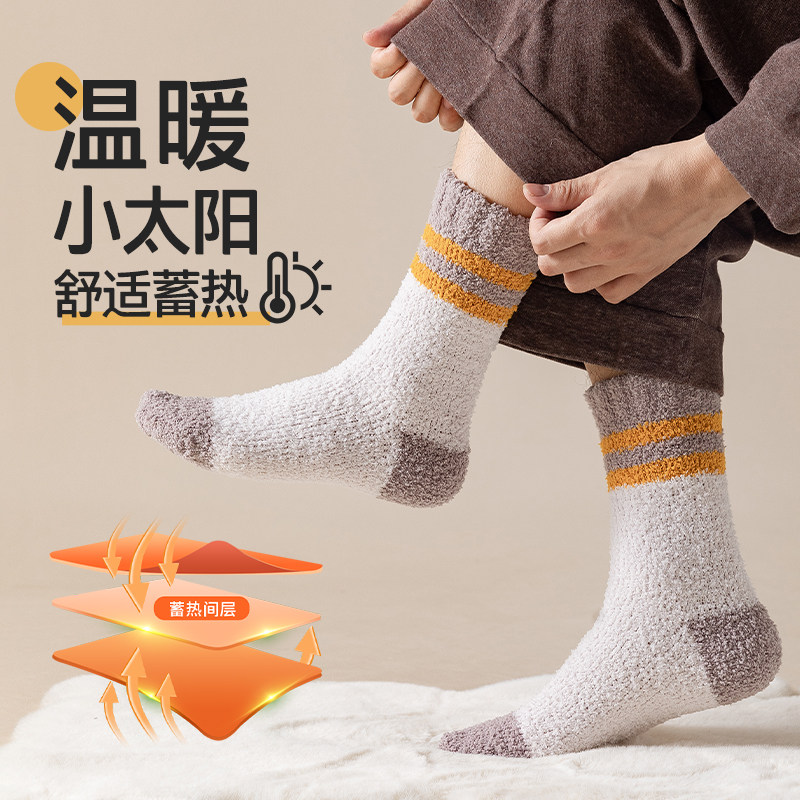 袜子男款秋冬季加绒加厚保暖中筒袜珊瑚绒居家睡眠毛巾袜巨厚长袜