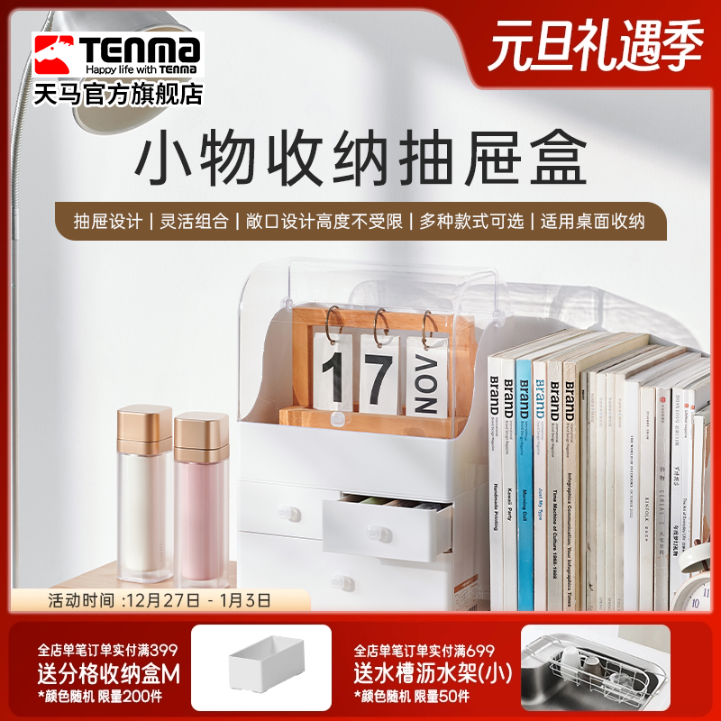 Tenma天马小物收纳盒家用护肤品桌面梳妆台整理盒面膜口红抽屉盒