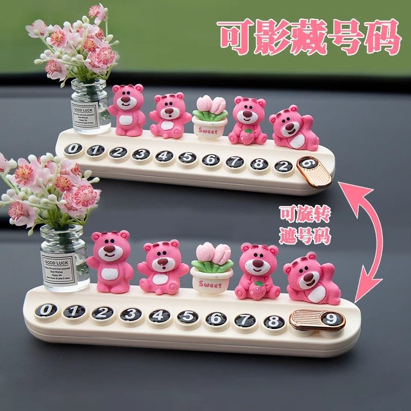 可爱草莓熊临时停车号码牌高级感挪车电话牌创意个性车内饰品摆件