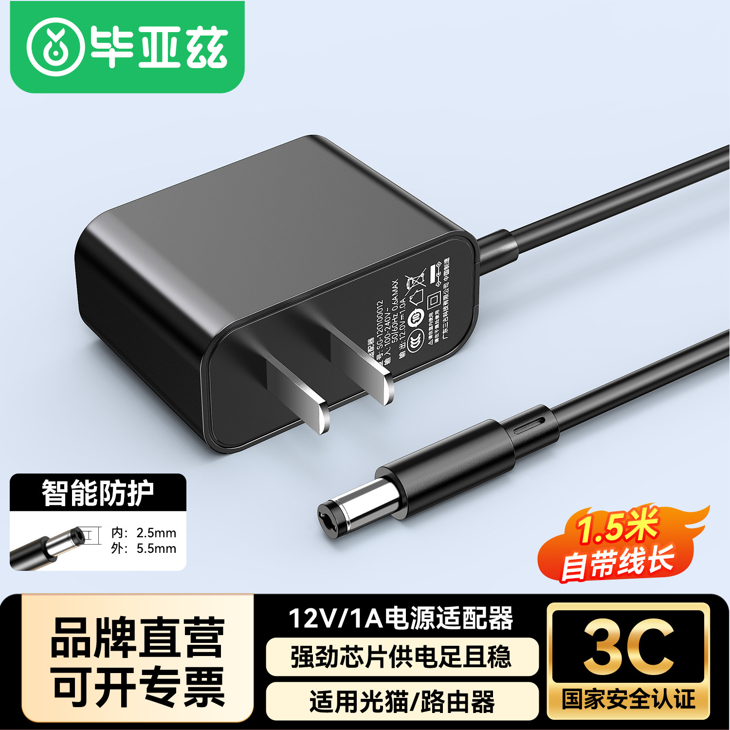 毕亚兹12V电源适配器5A3A1A DC5.5适用光猫监控摄像头电脑显示屏电子琴音响机顶盒移动硬盘路由器充电线圆孔