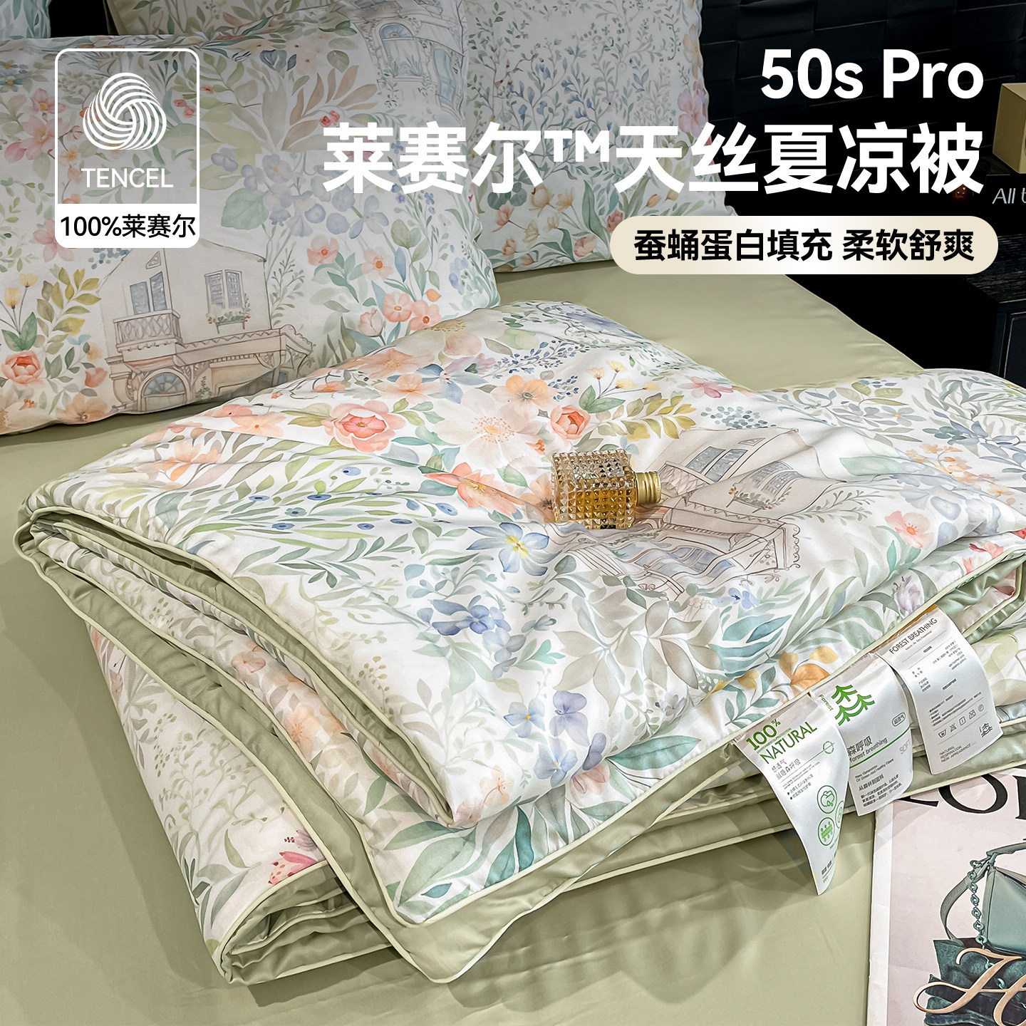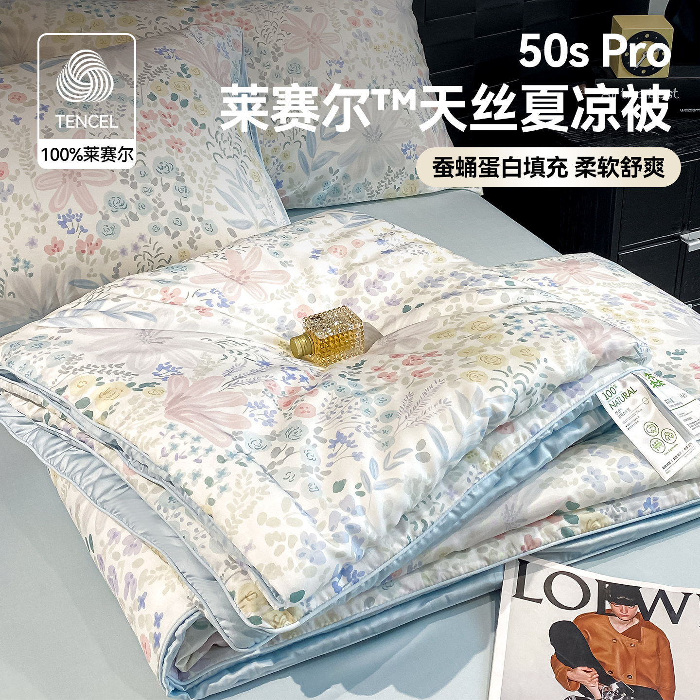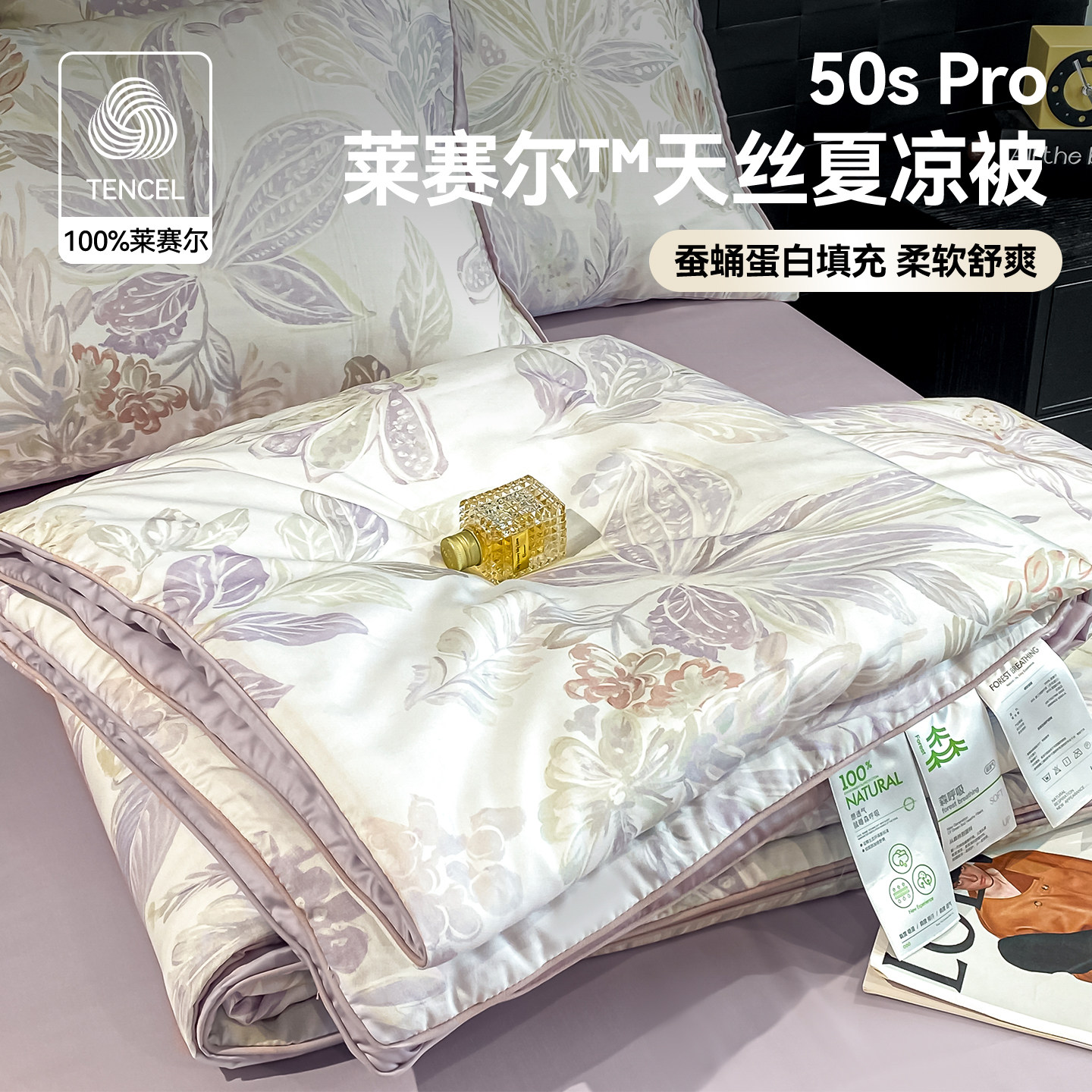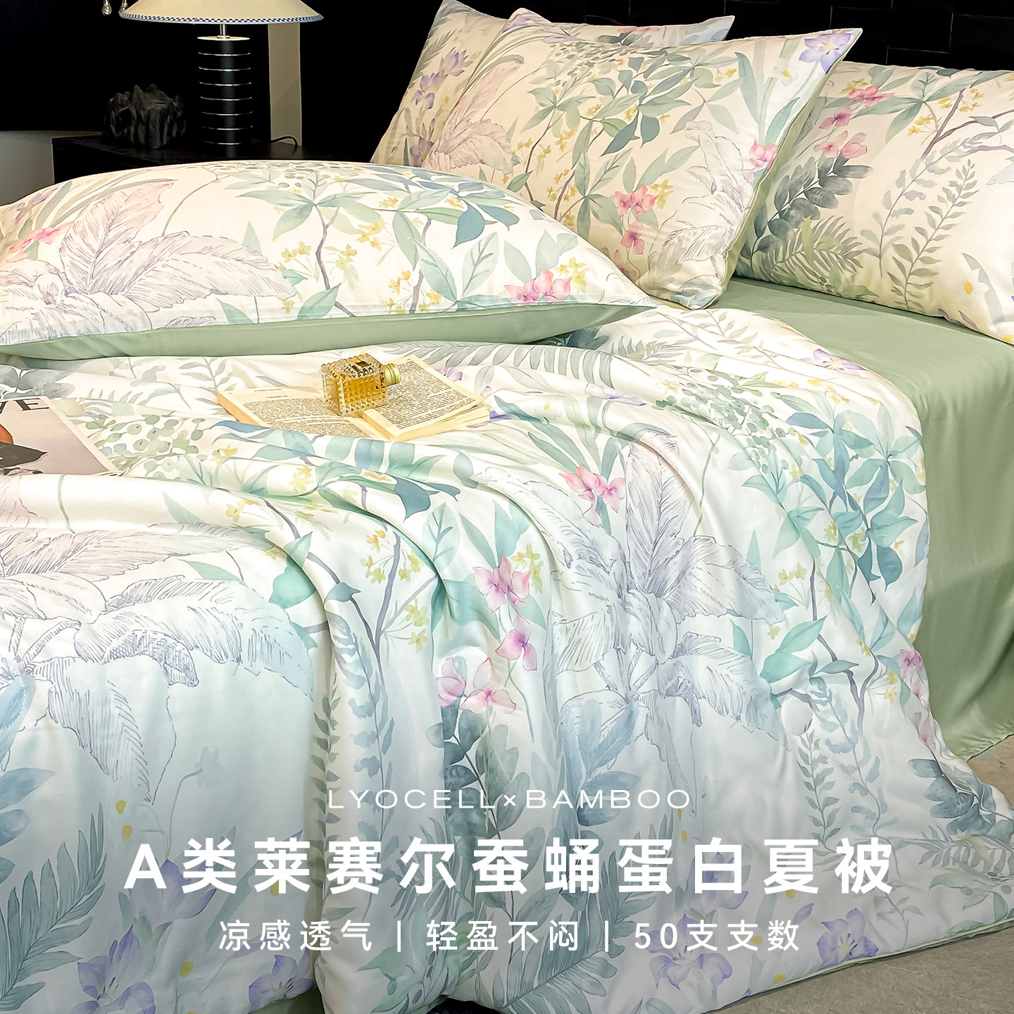 A类天丝夏凉被四件套空调被夏季冰丝薄被子单双人夏被可机洗水洗