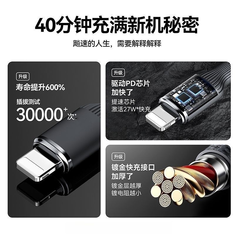 适用苹果14数据线iPhone17充电线13ProMax手机16冲电线USB车载短款PD快充15XR加长iPad平板12充电器线20W一套