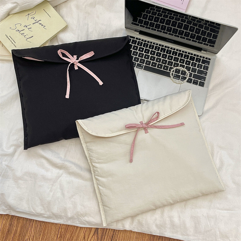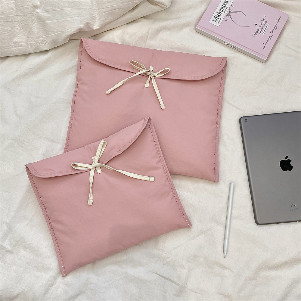 佑木包袋 韩式夹棉电脑包芭蕾风蝴蝶结内胆包ins同款粉色平板包袋