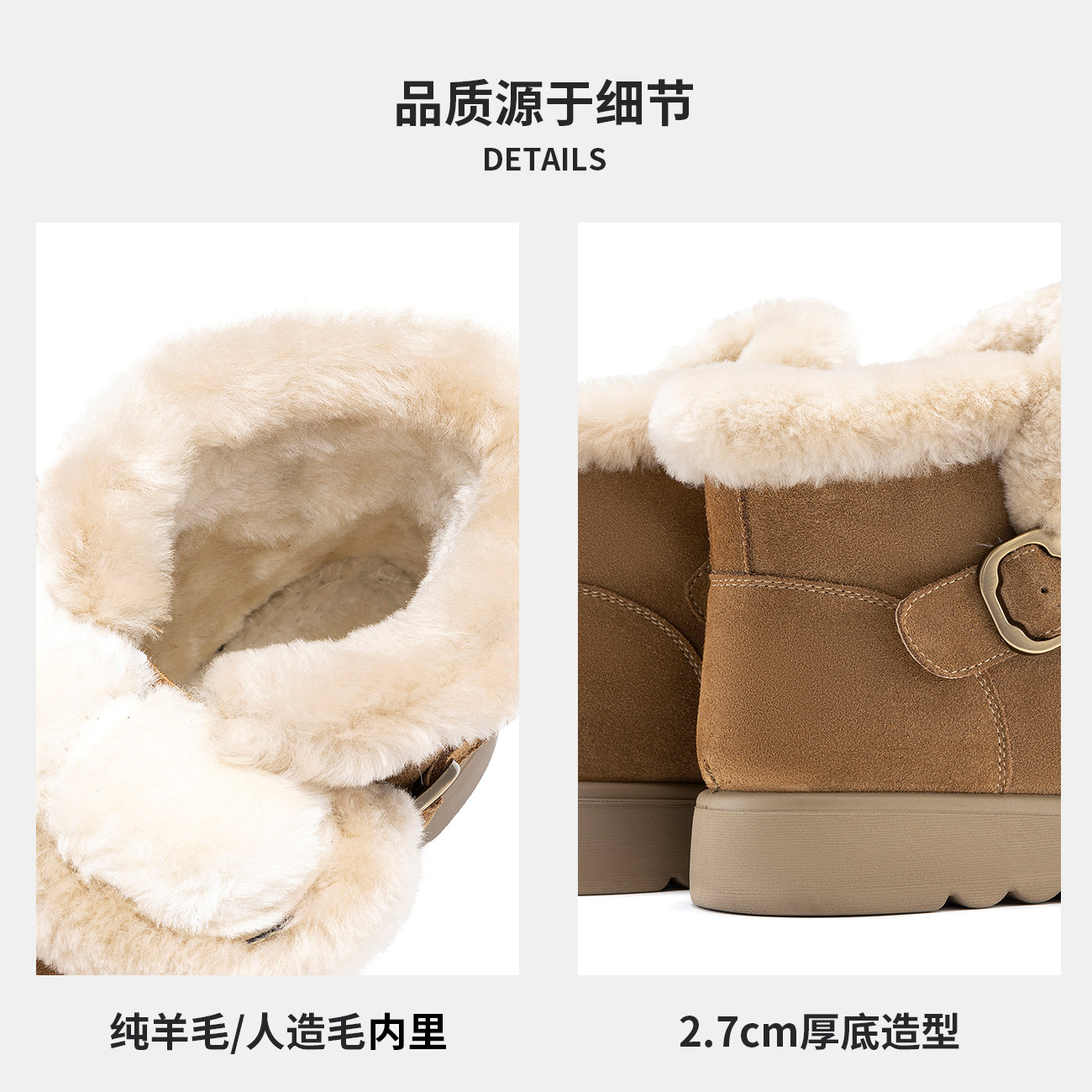 桑坡真羊毛雪地靴女款2025新款冬季真皮加绒棉靴厚底增高短筒靴子