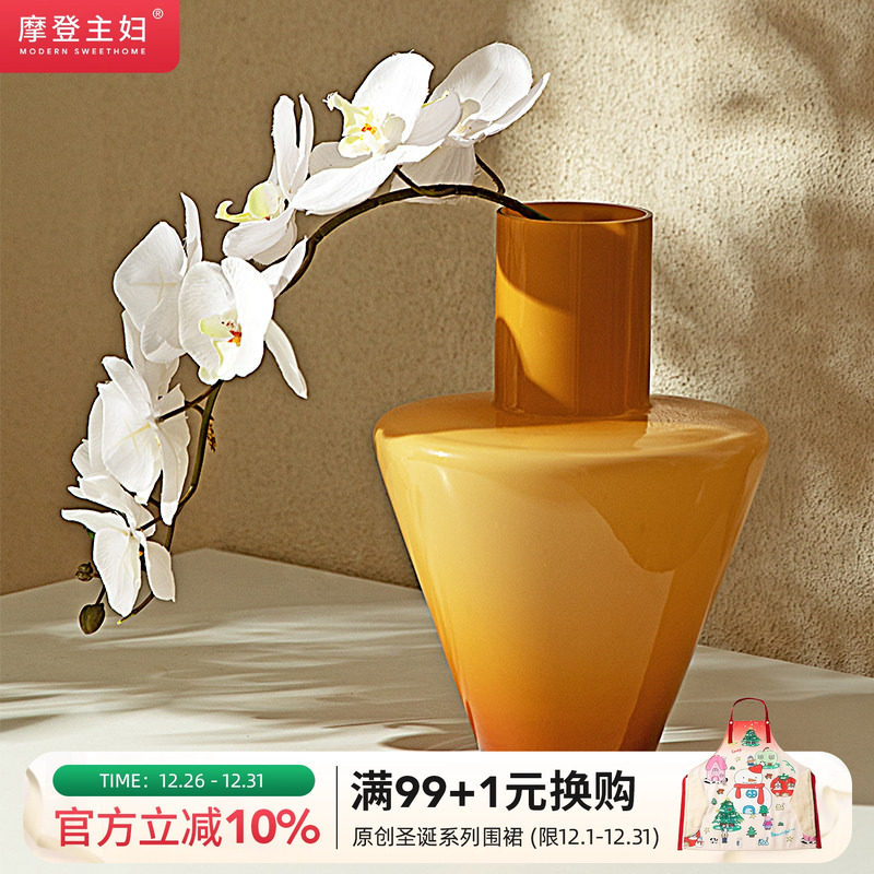 摩登主妇MONAZONE中古花瓶高级感桌面客厅摆件琥珀色花器乔迁礼物