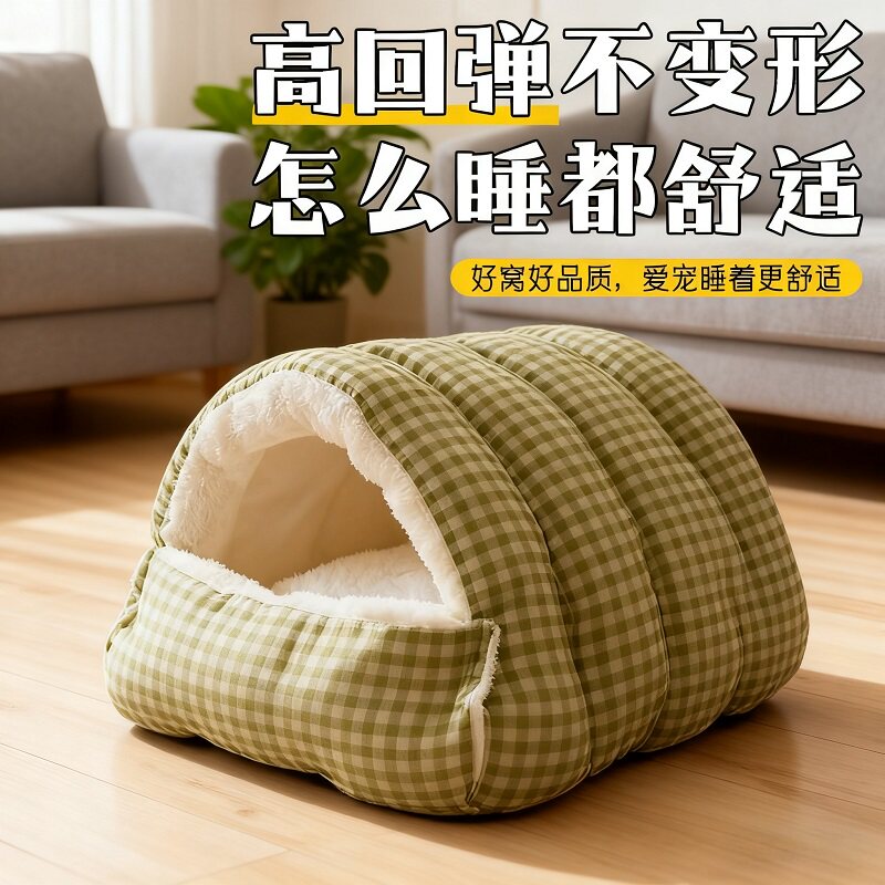 冬季保暖猫窝窝封闭式猫咪踩奶睡袋加绒加厚狗窝屋可拆洗室内中型