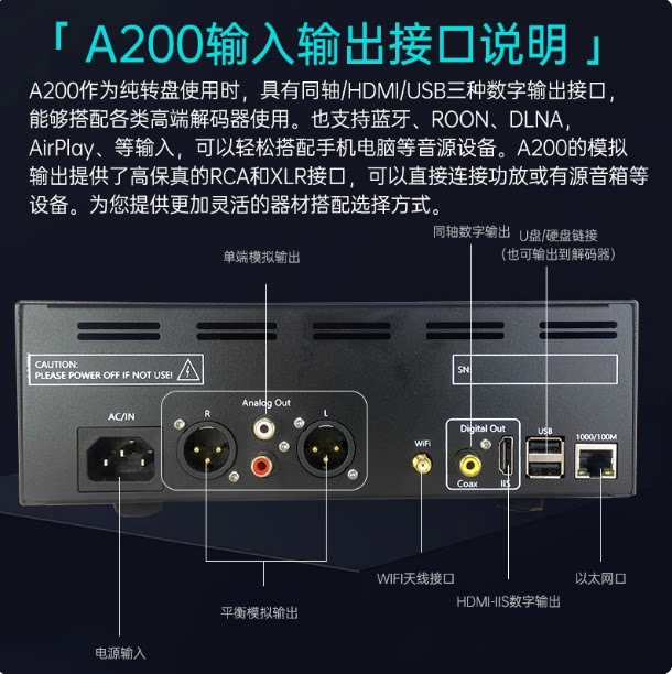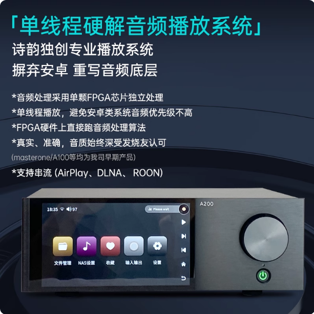 诗韵A200HIFI无损音乐播放器 DLAN/AIRPLAY/ROON/NAS/串流、蓝牙