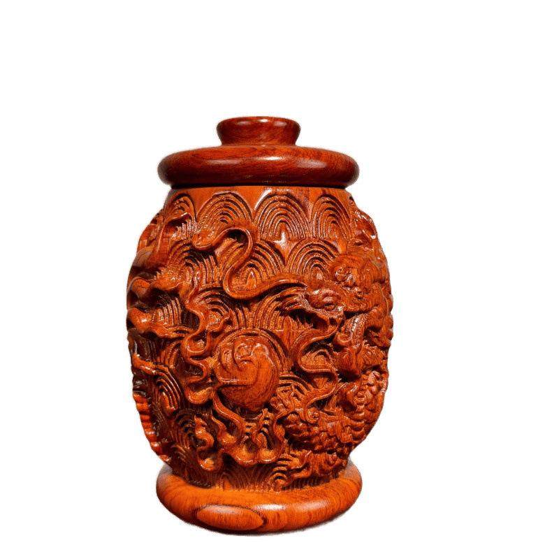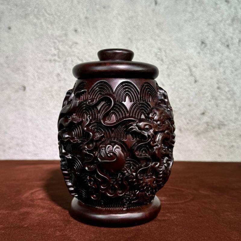 黑檀木雕刻 龙凤罐收纳罐浮雕龙凤 储物罐子家居摆设直播供货