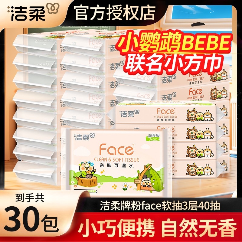 【学生必备】洁柔小鹦鹉抽纸3层40抽便携式方巾面巾餐巾卫生纸巾
