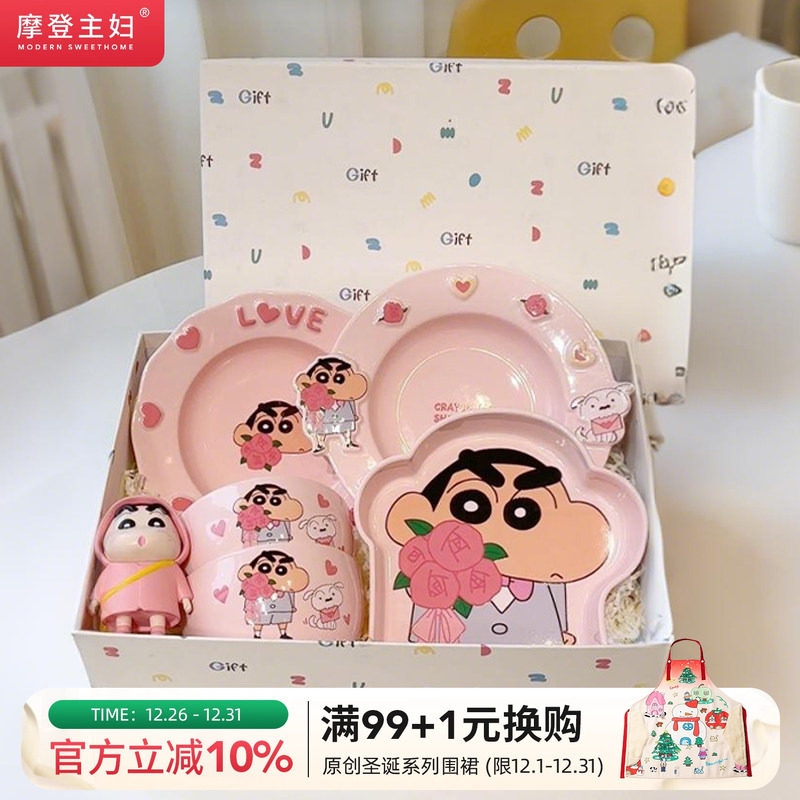 【摩登主妇&蜡笔小新】餐具套装碗碟盘家用生日订婚结婚新婚礼物