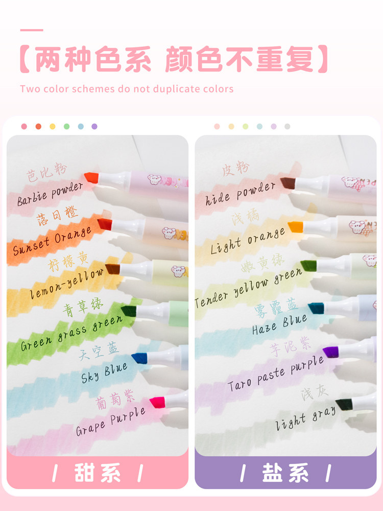 新色荧光笔双头荧光标记笔学生用彩色划重点记号笔手帐笔手账笔专用笔多色轻胭色淡色高颜值莹光彩色笔做笔记