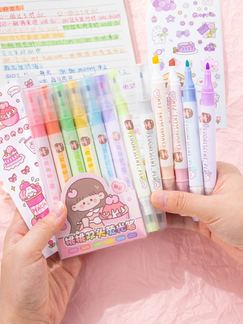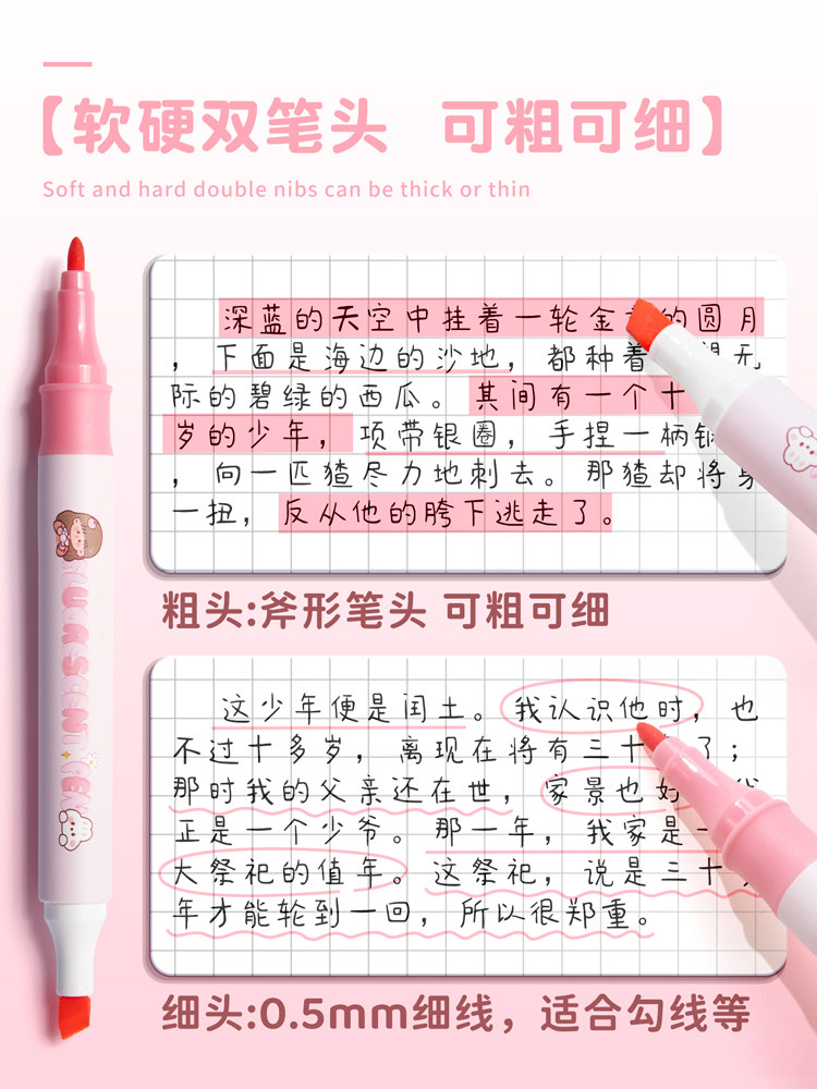 双头荧光笔标记学生套装 荧光笔批发 ins高颜值 网红记号笔笔记笔