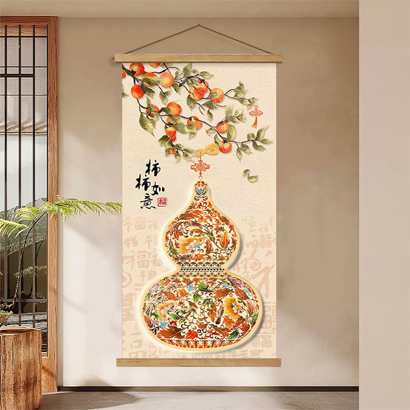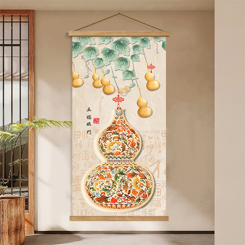 花瓶葫芦挂画福禄入户玄关装饰画新中式客厅正对门过道壁画艺术
