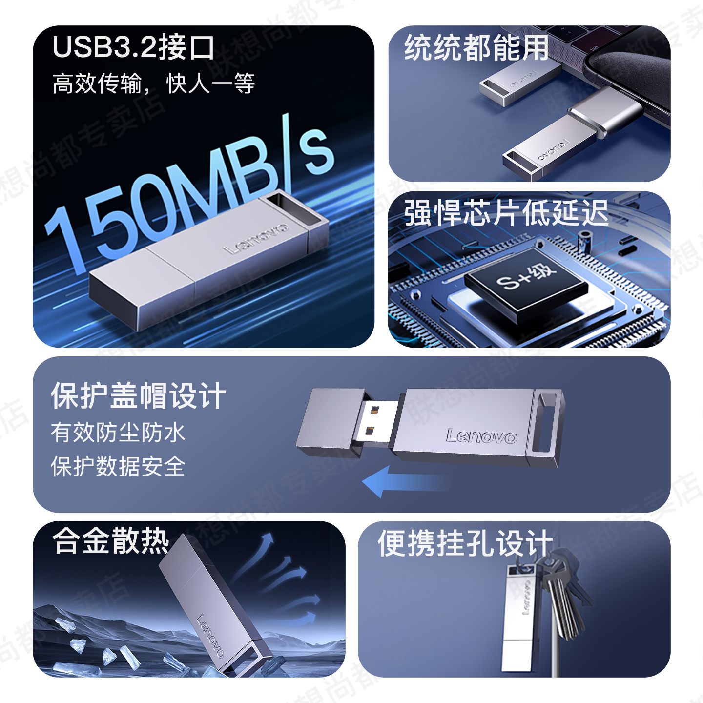 联想正品u盘128g大容量高速usb3.2手机电脑两用64g优盘官方旗舰店