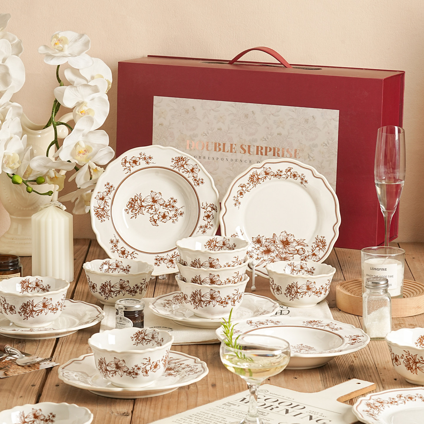 高档碗碟餐具陶瓷新婚礼物送新娘红色碗盘筷套装乔迁新居结婚礼盒