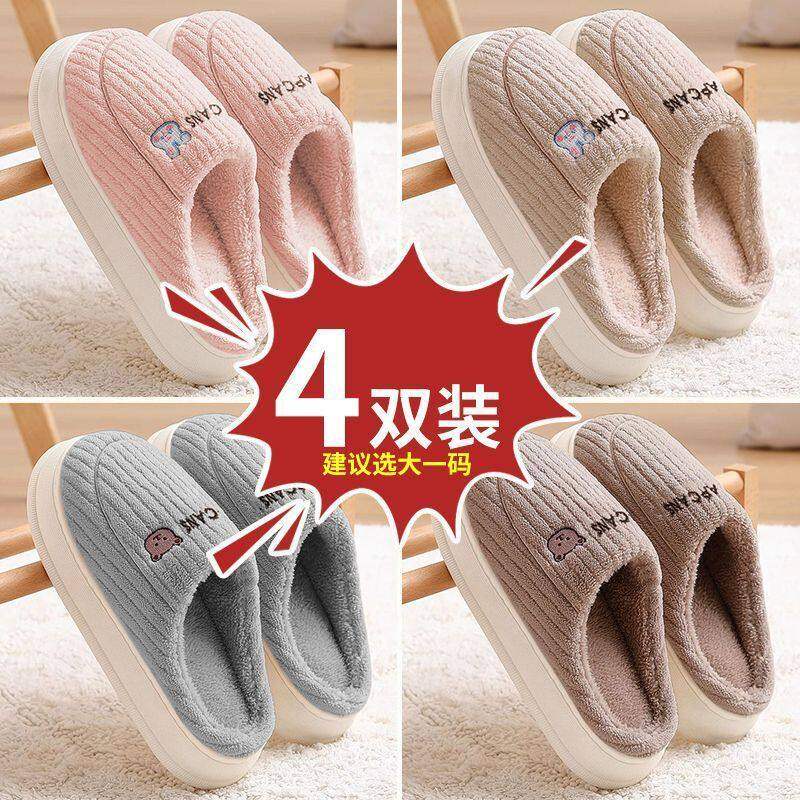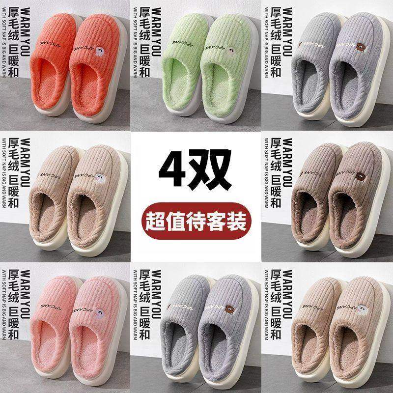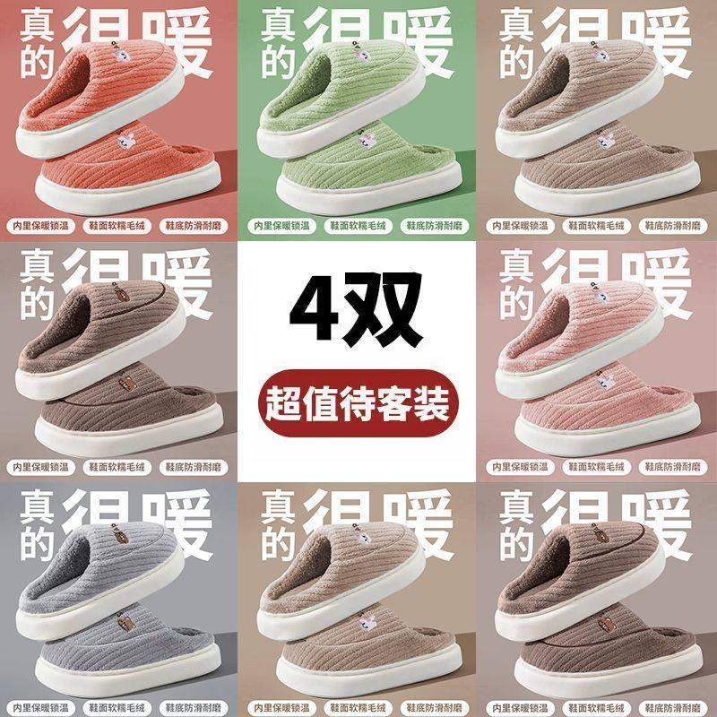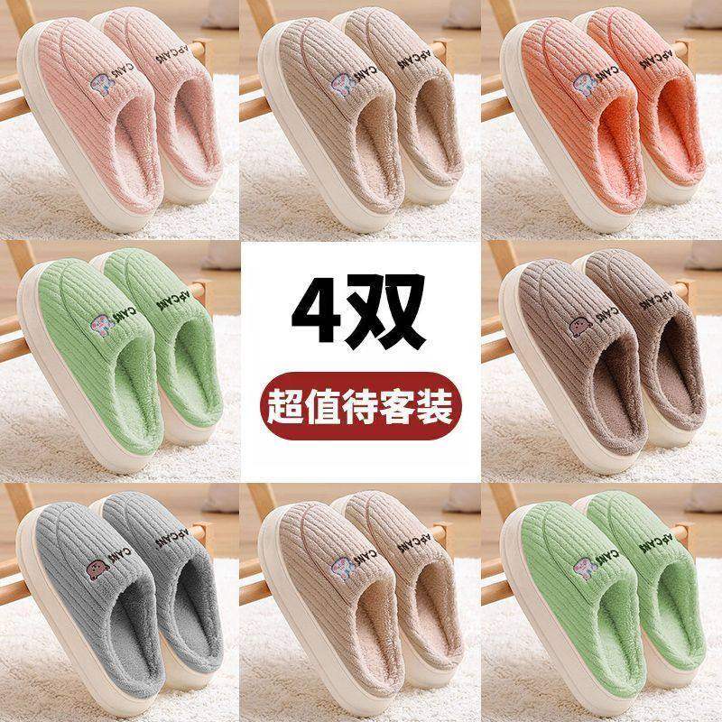四双装棉拖鞋女士秋冬季家用待客室内厚底防滑保暖月子拖鞋男士款