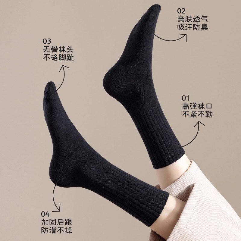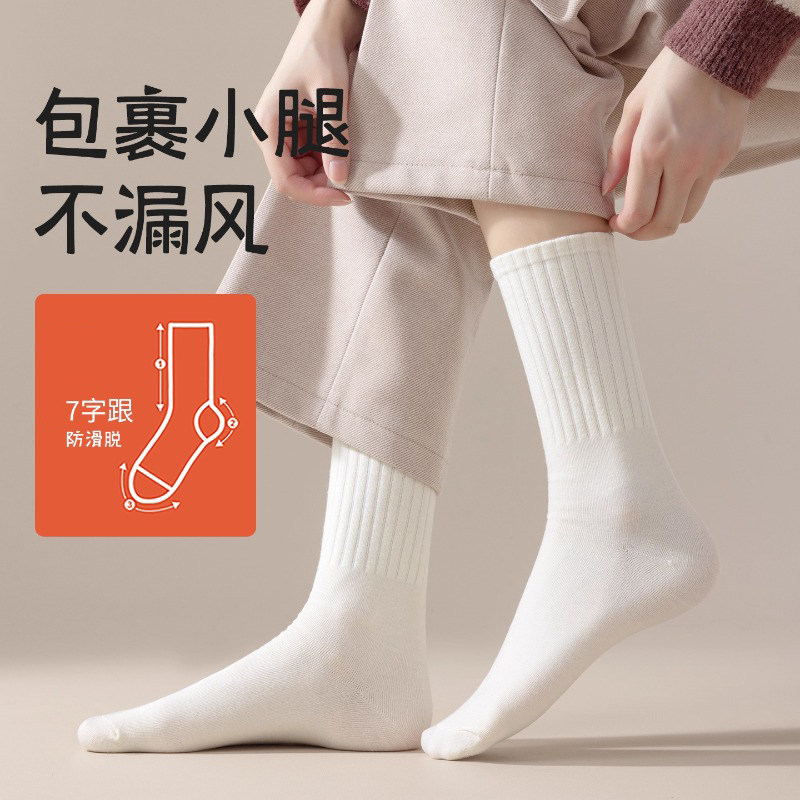 袜子女长筒袜秋冬爆款10A抗菌防臭纯色棉袜吸汗无骨保暖女中筒袜