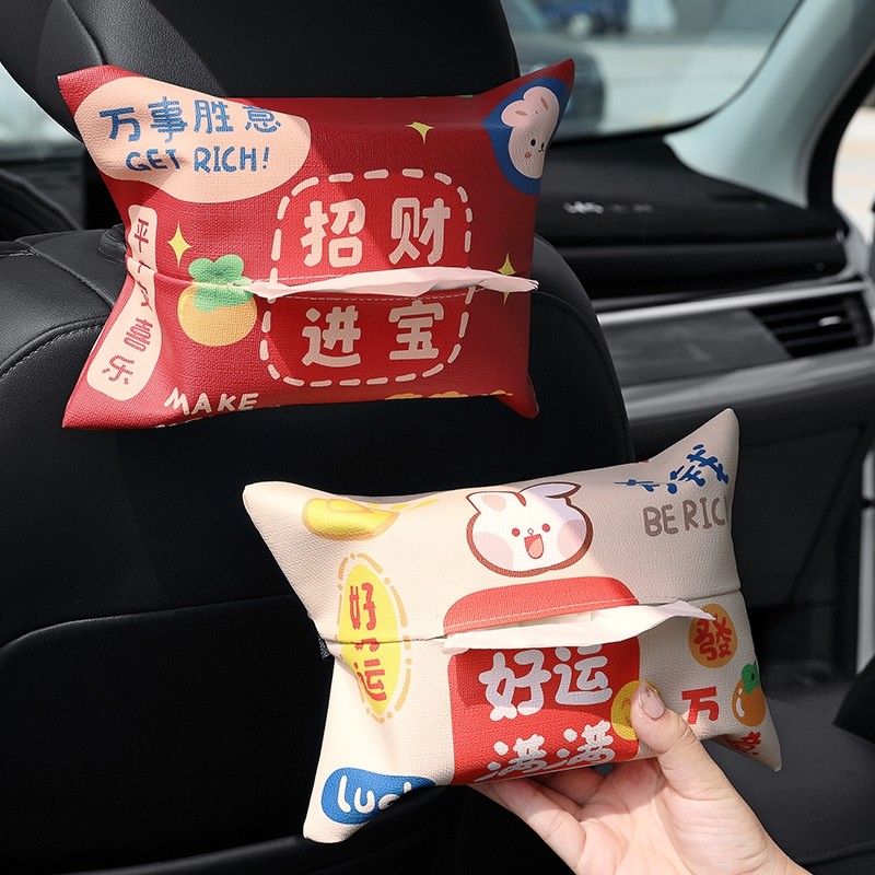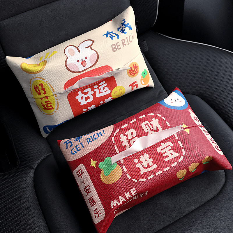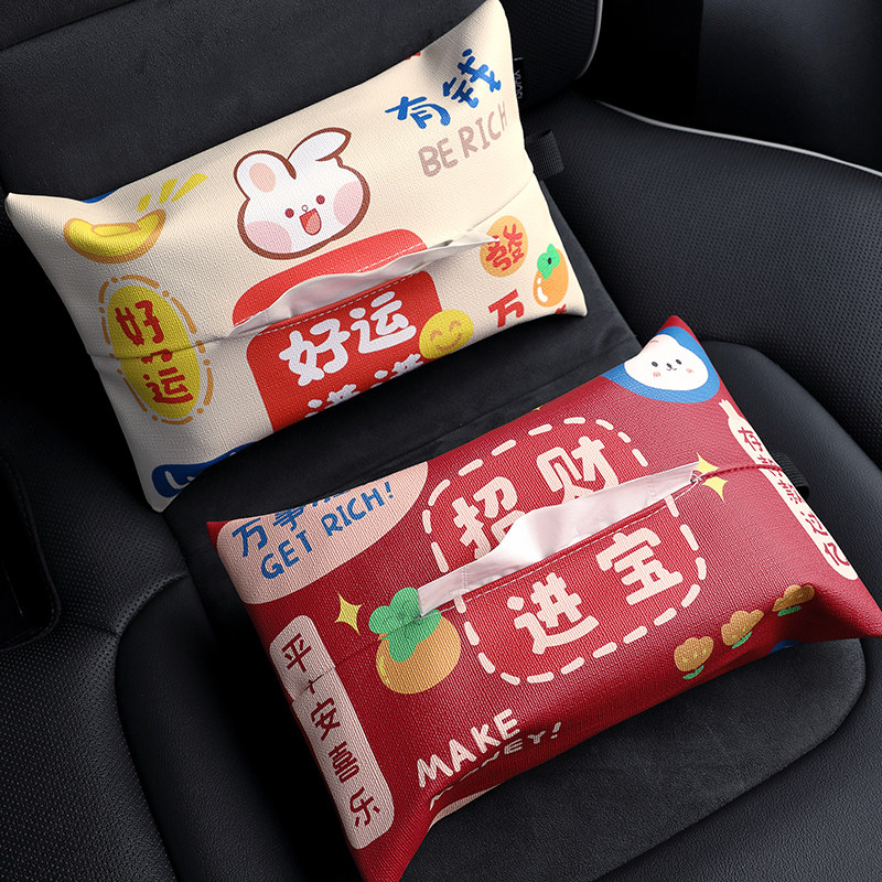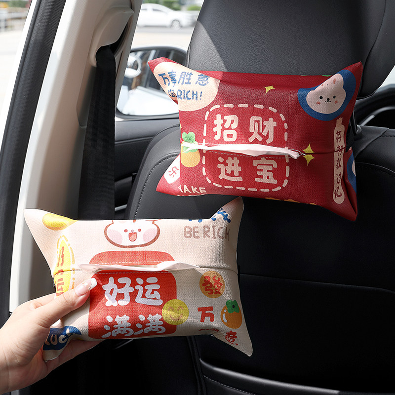 好运满满纸巾盒车载抽纸盒车内挂式纸巾套扶手箱遮阳板通用纸抽盒
