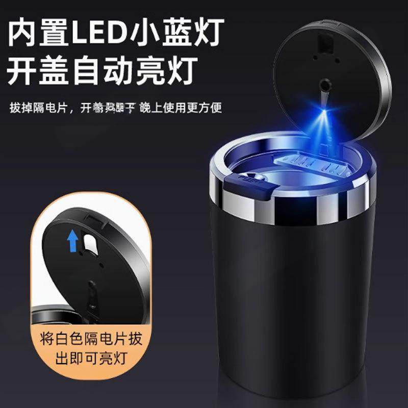 汽车专用车载带灯烟灰缸防灰飞带盖内饰用品香烟缸自动开盖不锈钢