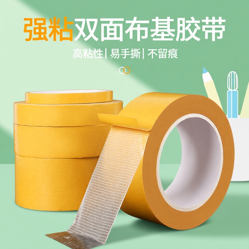 强粘力布基双面胶带高粘度编织布黄色透明网格地毯地板革拼接防水超粘不留痕墙面固定用耐高温气球墙纸双面胶