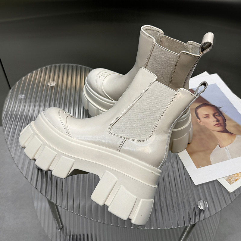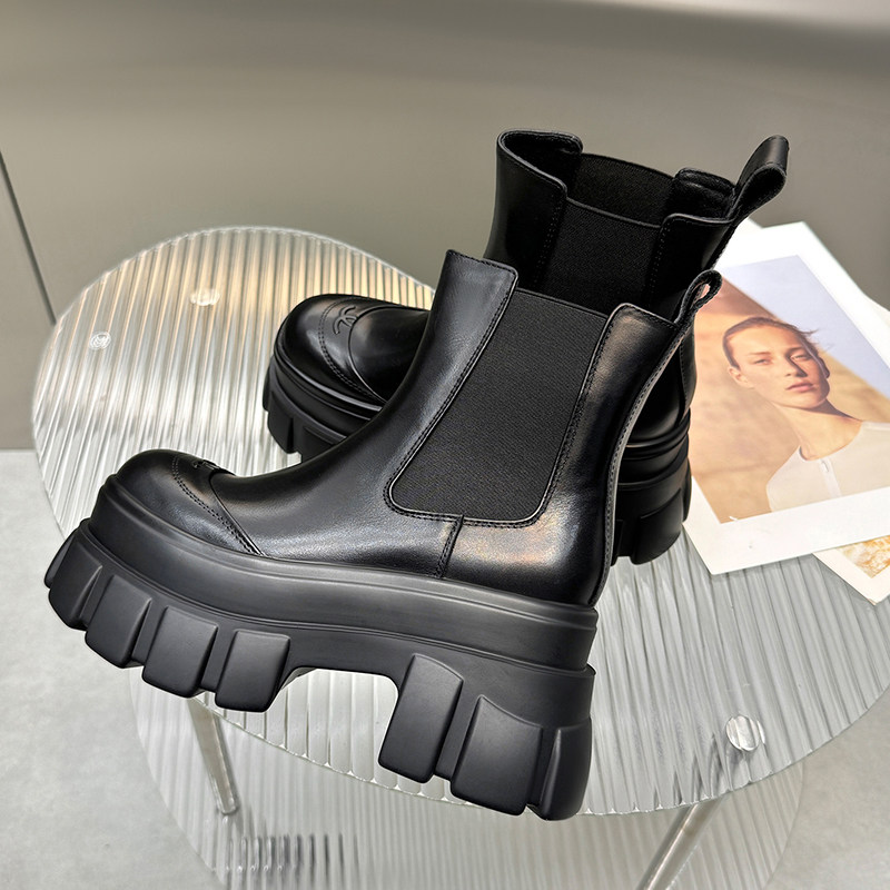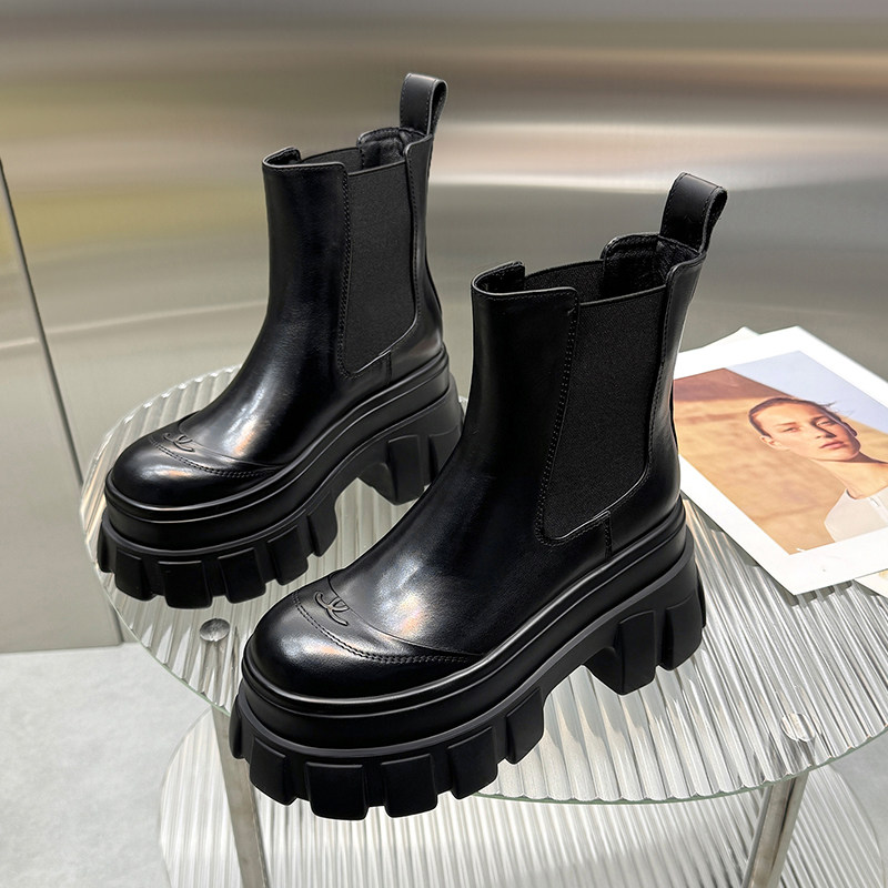 欧货真皮增高厚底2025新款9cm切尔西短靴女英伦风松糕欧货马丁靴