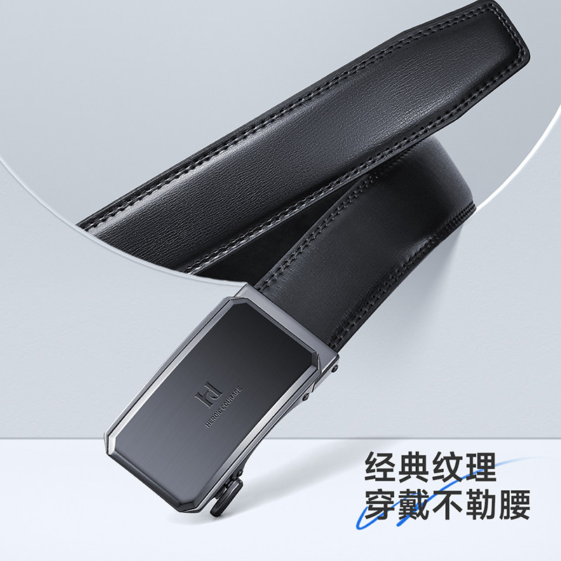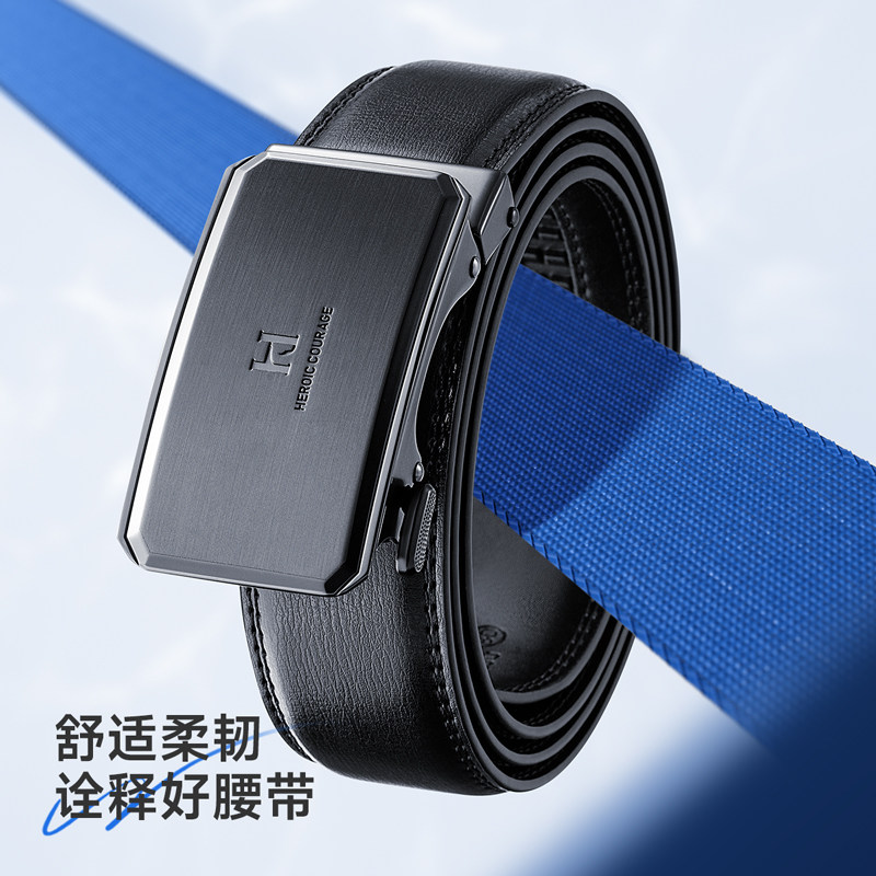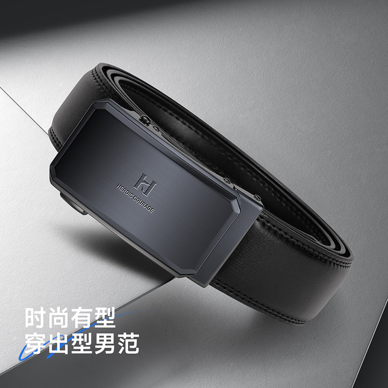 HLA/海澜之家自动扣男士皮带年轻人真牛皮商务牛皮腰带新款裤带