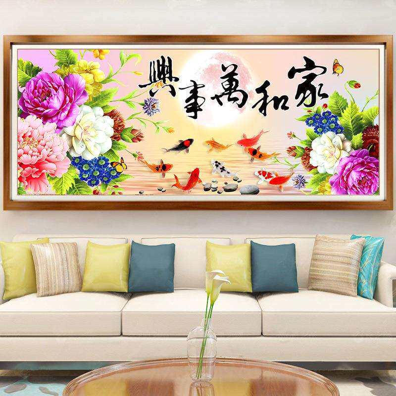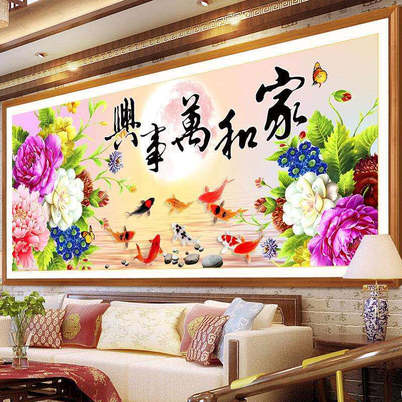 家和万事兴十字绣2024新款线绣客厅九鱼图牡丹花大幅自己绣手工