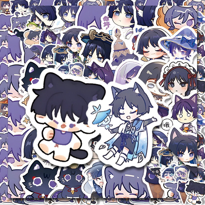 220张原神散兵周边贴纸Q版卡通可爱二次元手账diy笔记本手机防水