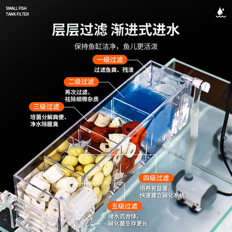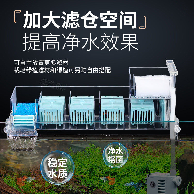 鱼缸净水器三合一循环水泵过滤盒内置过滤水上置滴流盒系统增氧