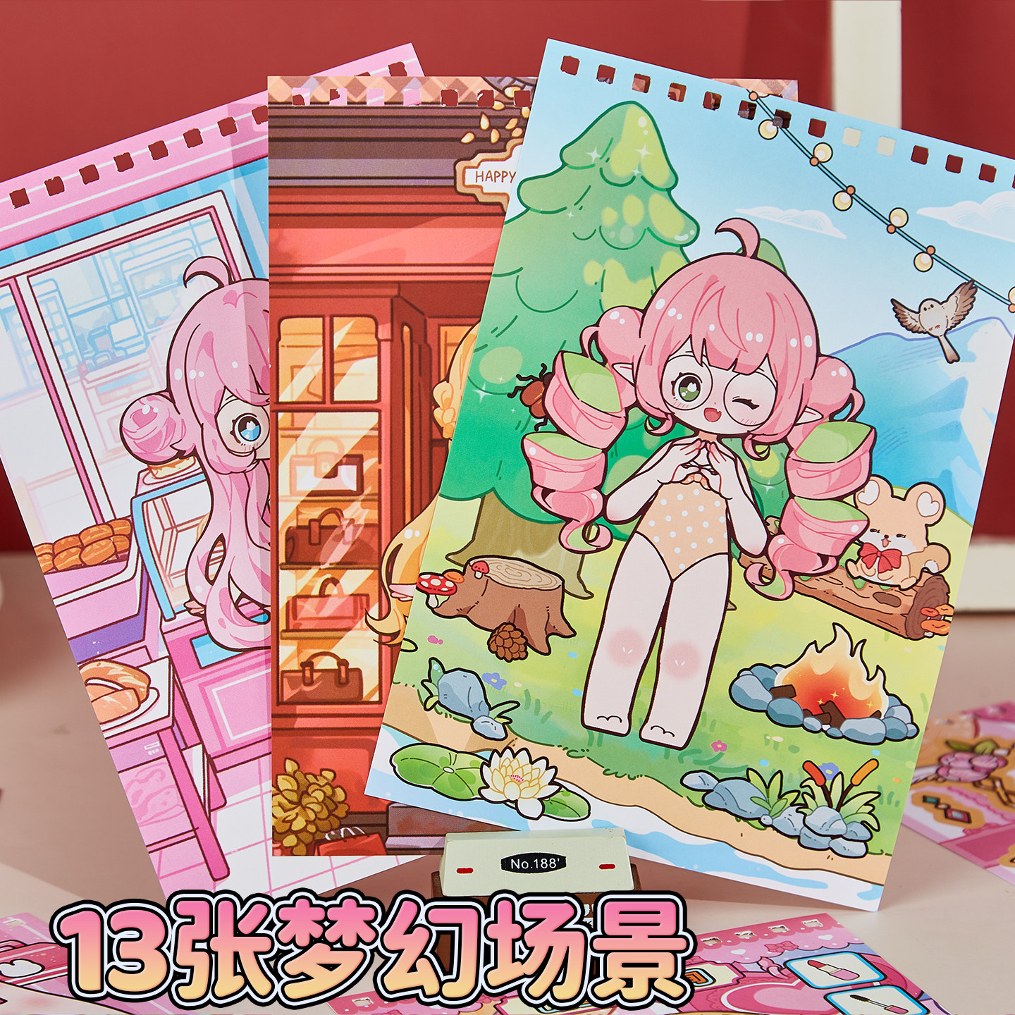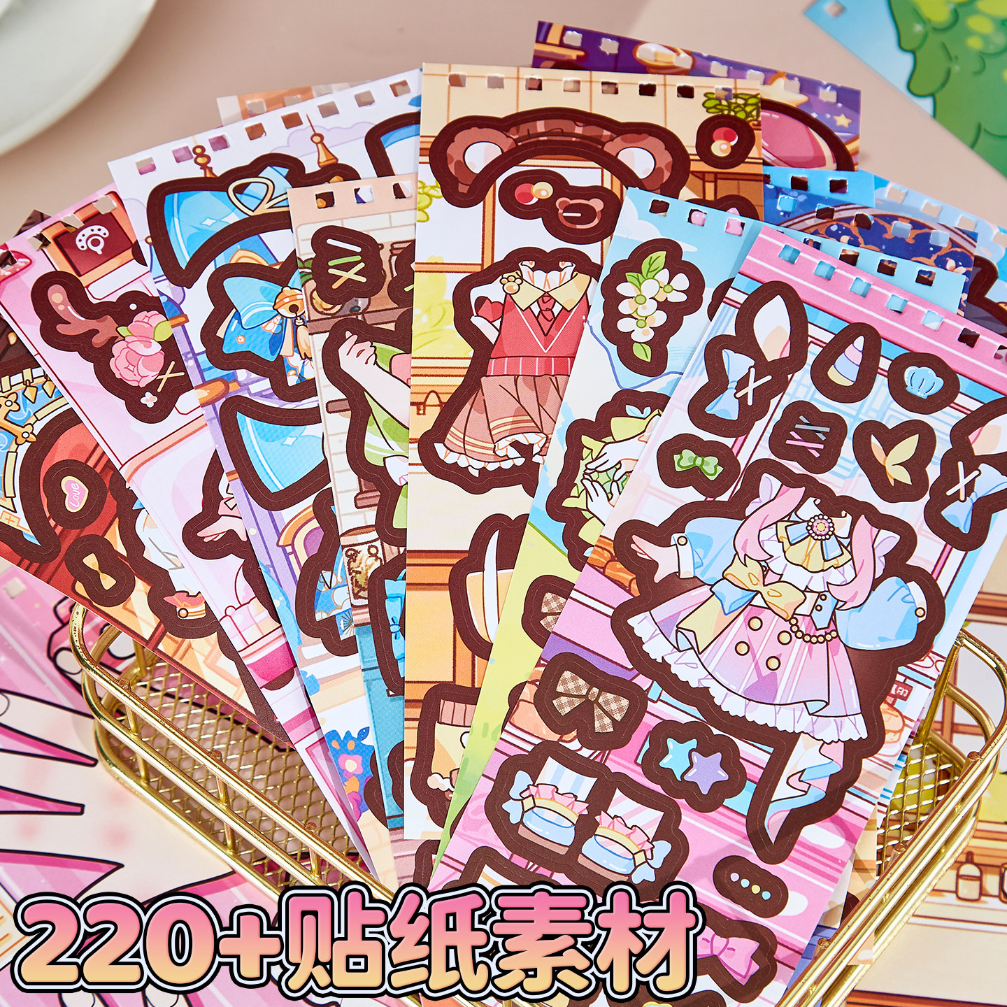 萌崽新款学霸学渣果冻贴纸安静书儿童免裁剪手工粘贴DIY女孩趣味玩具