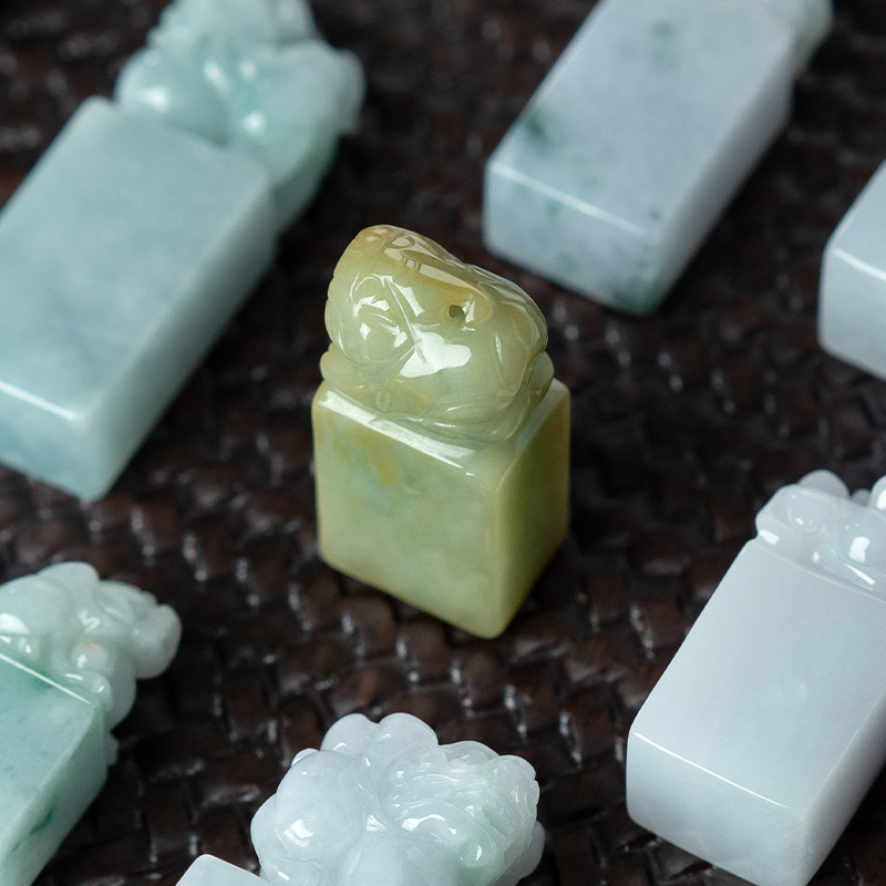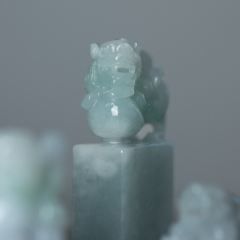 张小凤 孤品翡翠印章 糯冰玉石空白书法书画藏书章压角章文房摆件挂件收藏礼盒礼品