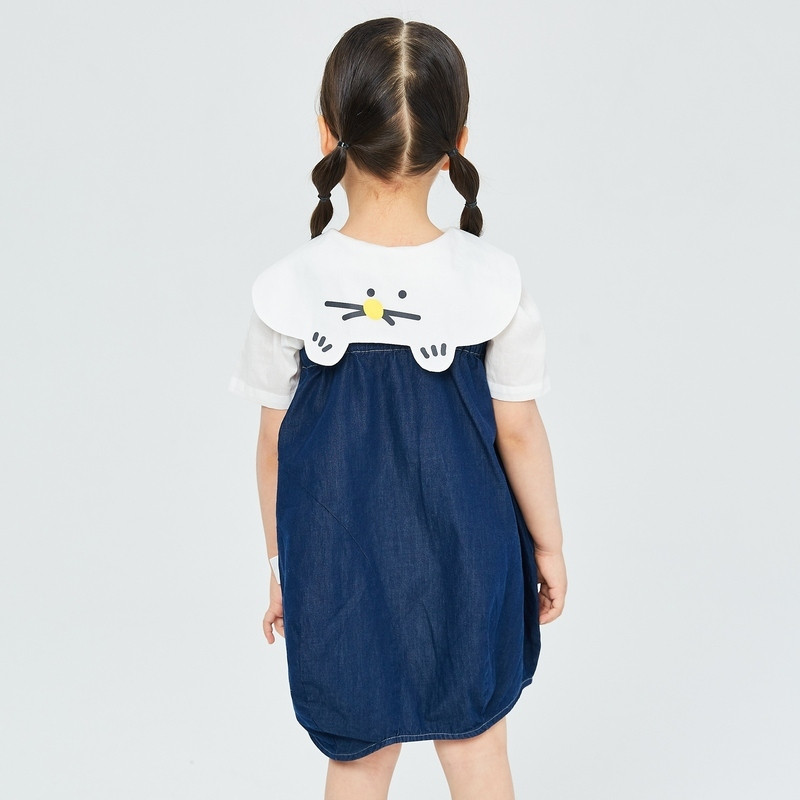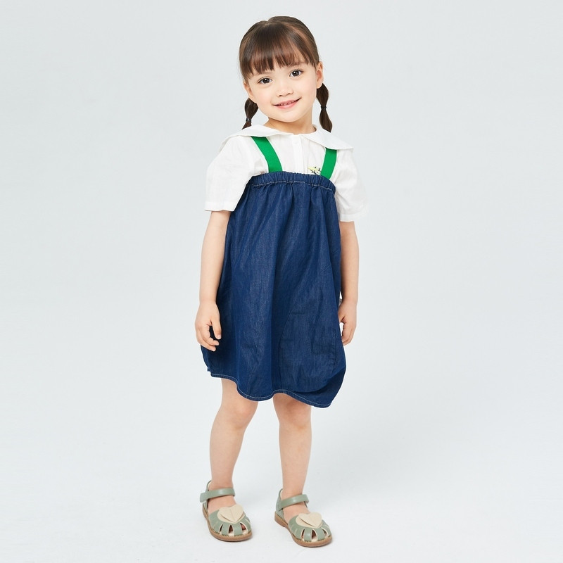 马拉丁童装女小童儿童2023夏装新款茧型牛仔背带裙复古弧形裙摆
