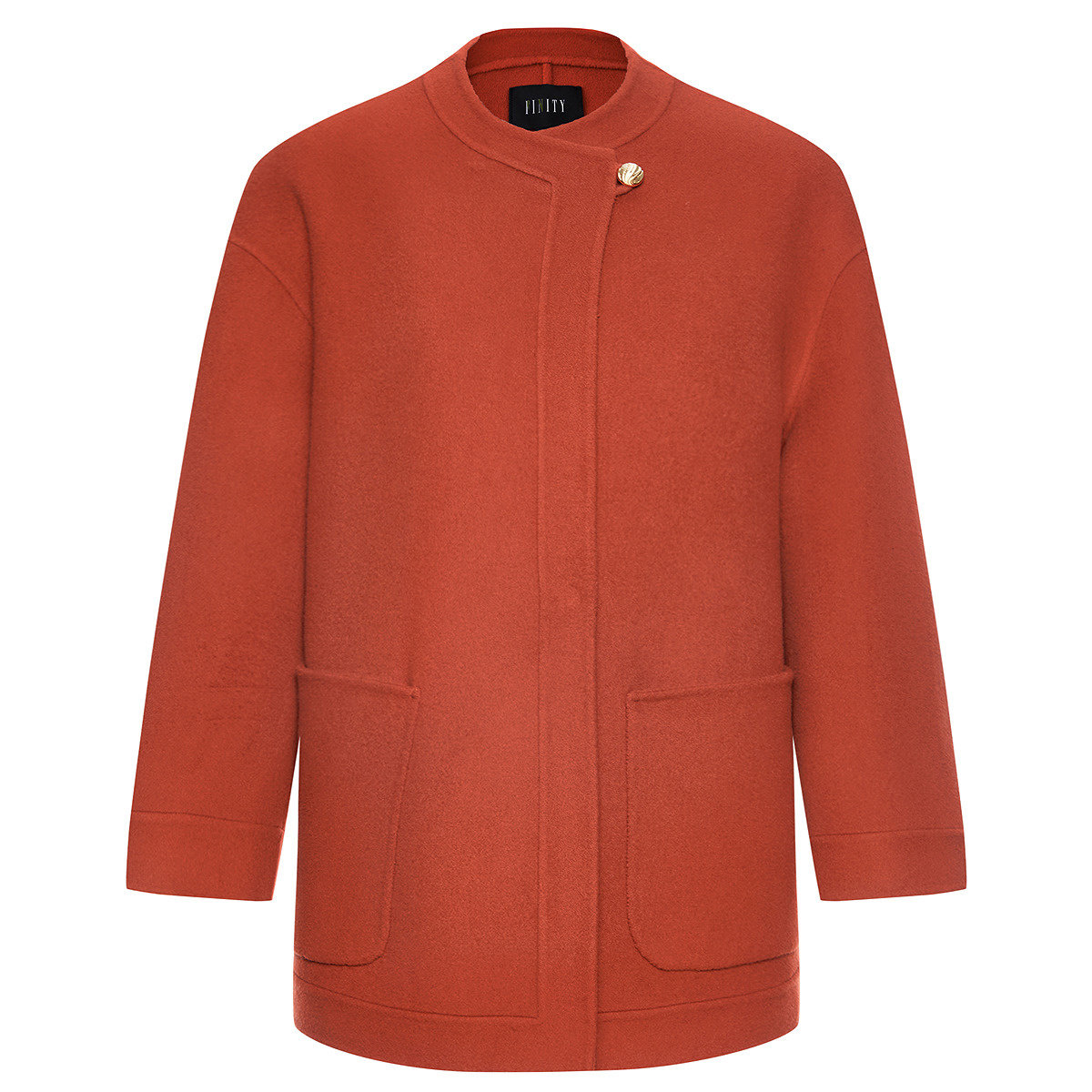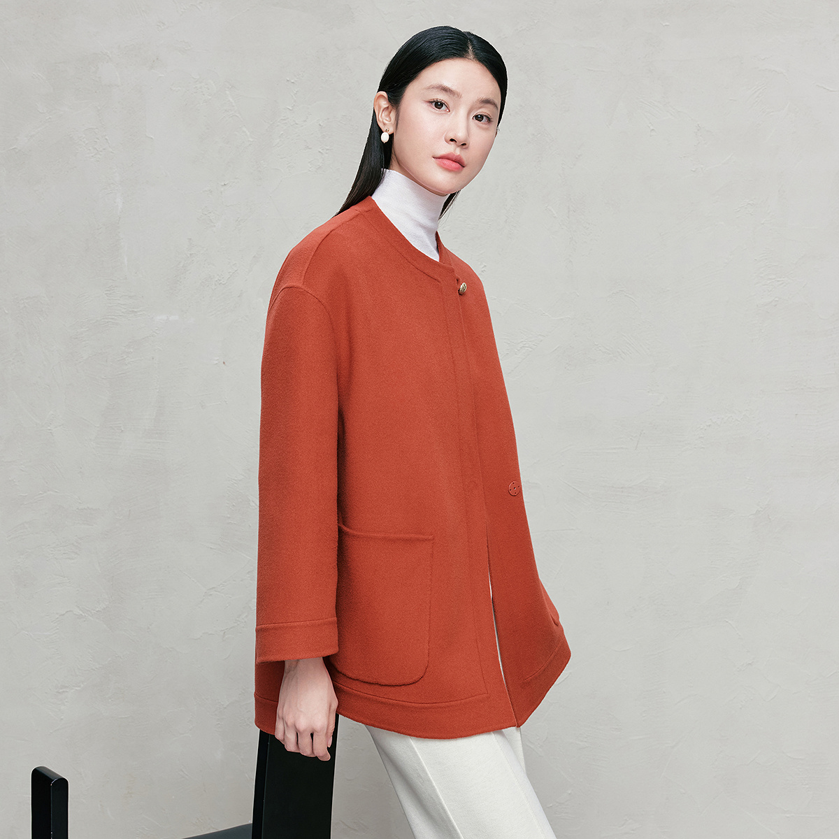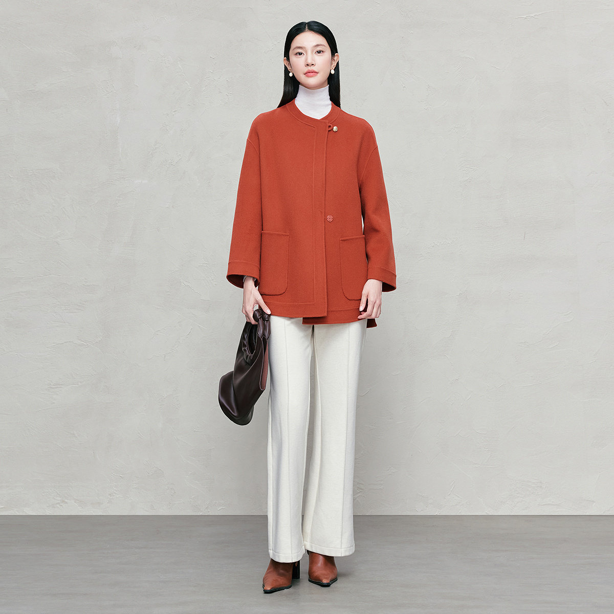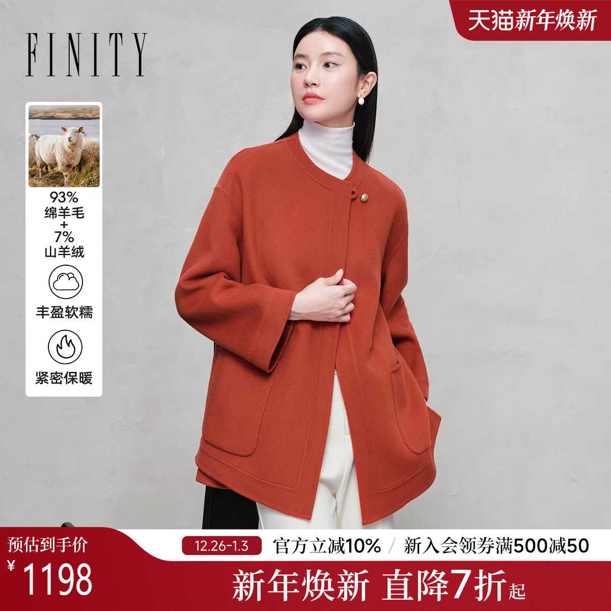 FINITY菲妮迪毛呢外套2025冬季新款双面呢桔色中长款羊绒大衣女