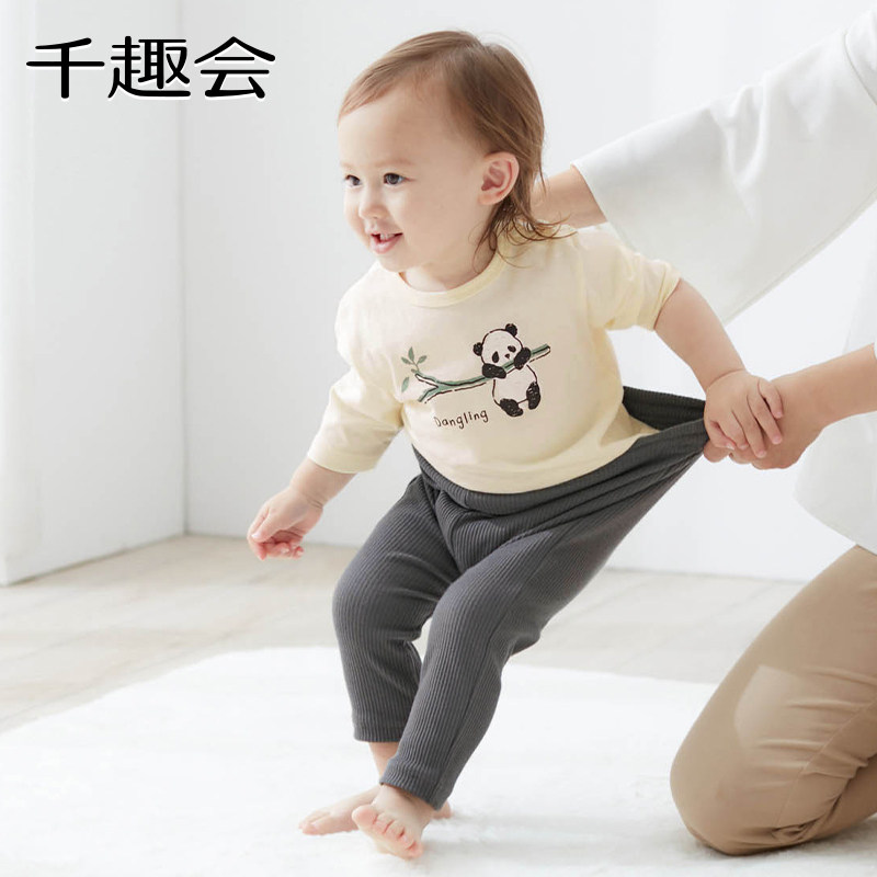千趣会春秋款婴童弹力棉质打底裤男女宝宝后裆加裆裤子