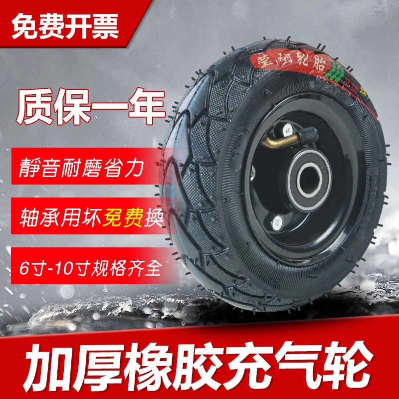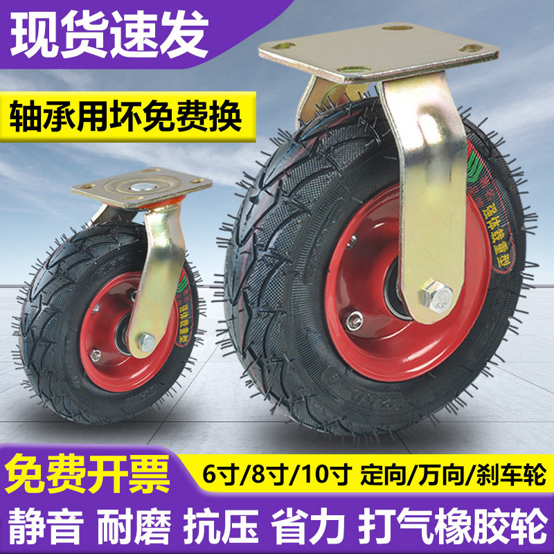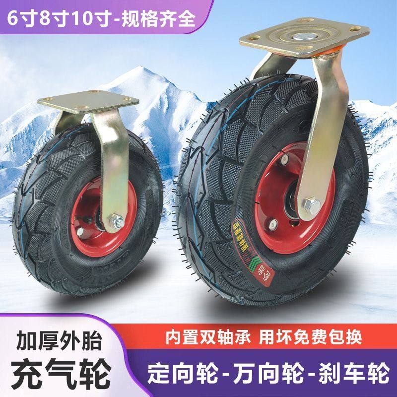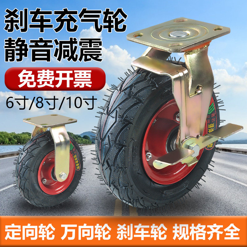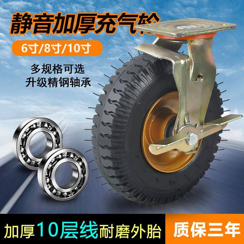 充气脚轮万向轮6寸8寸10寸静音减震加厚带刹车手推车轮胎真空重型