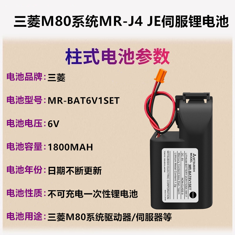 三菱M80系统MR-J4 JE伺服锂电池 MR-BAT6V1SET -A 2CR17335A WK17