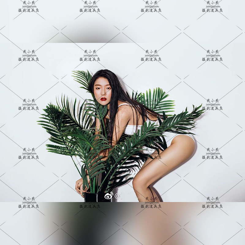 个性写真拍照绿植薇拉叶树儿童写真摄影道具影楼仿真树铁桶装饰桶
