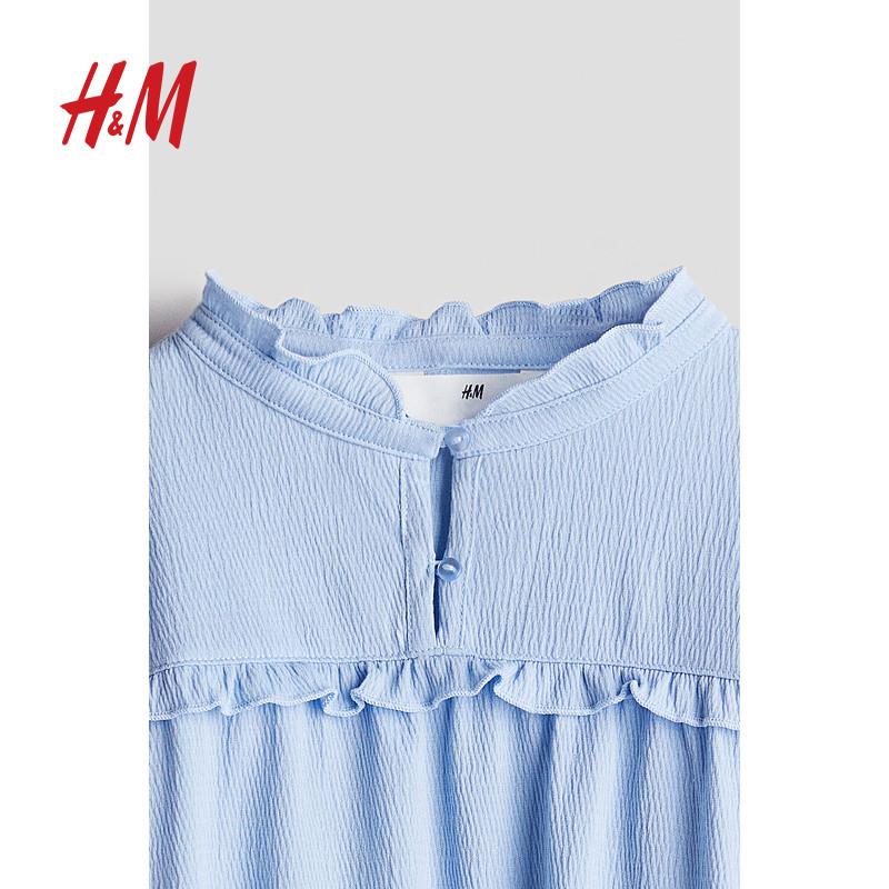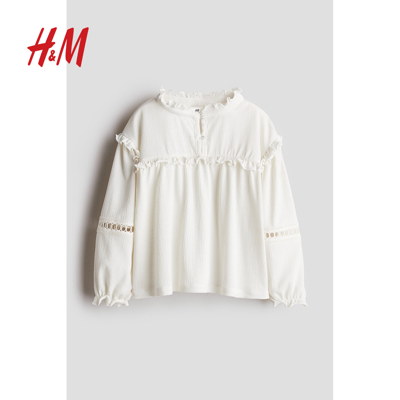 HM童装儿童女童衬衫2025冬新款落肩长袖流行皱感有领上衣1285747