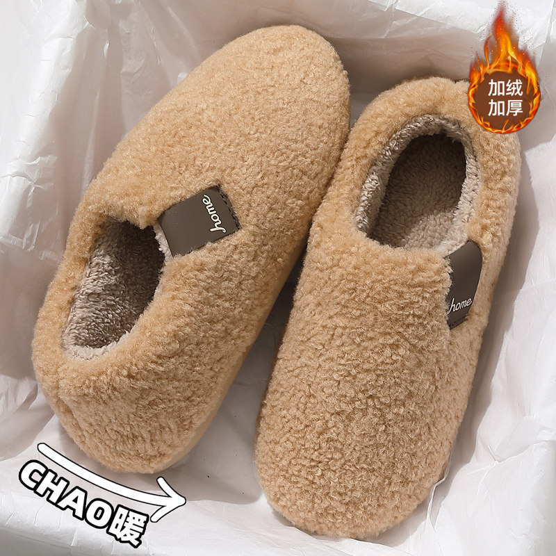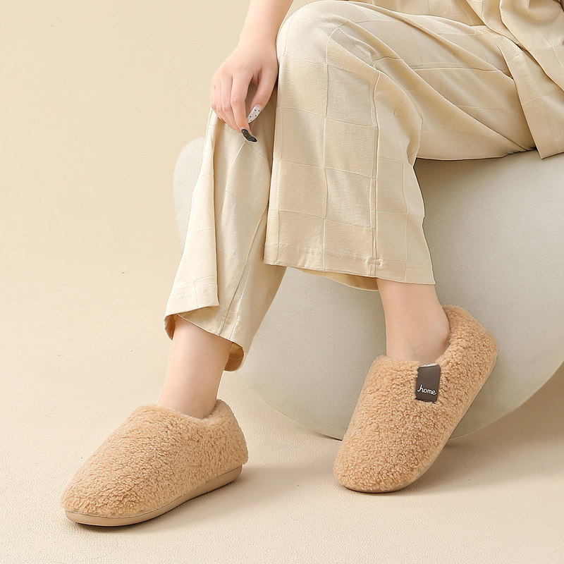 朴西棉拖鞋女士秋冬季厚底简约保暖室内居家用软底防滑情侣棉拖男