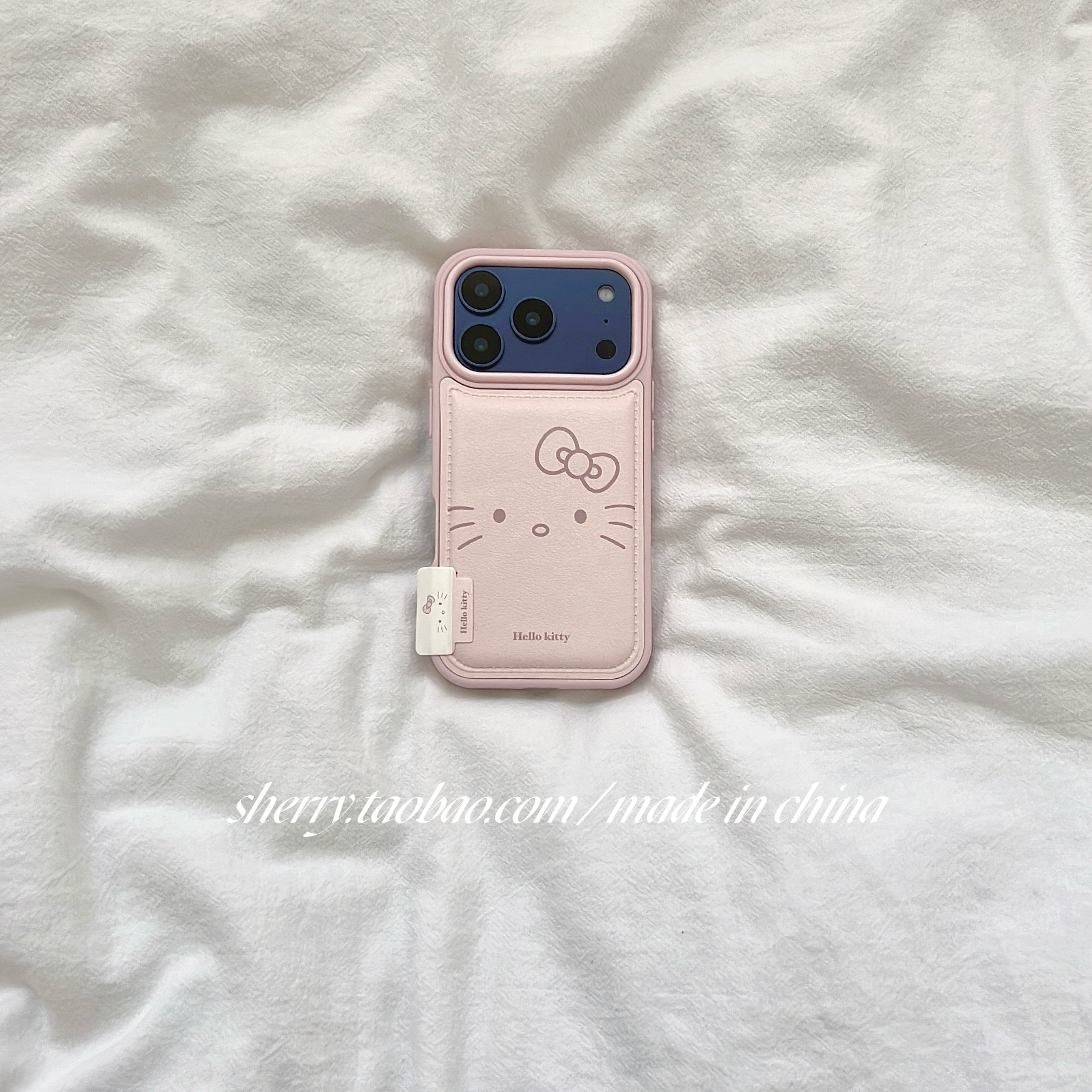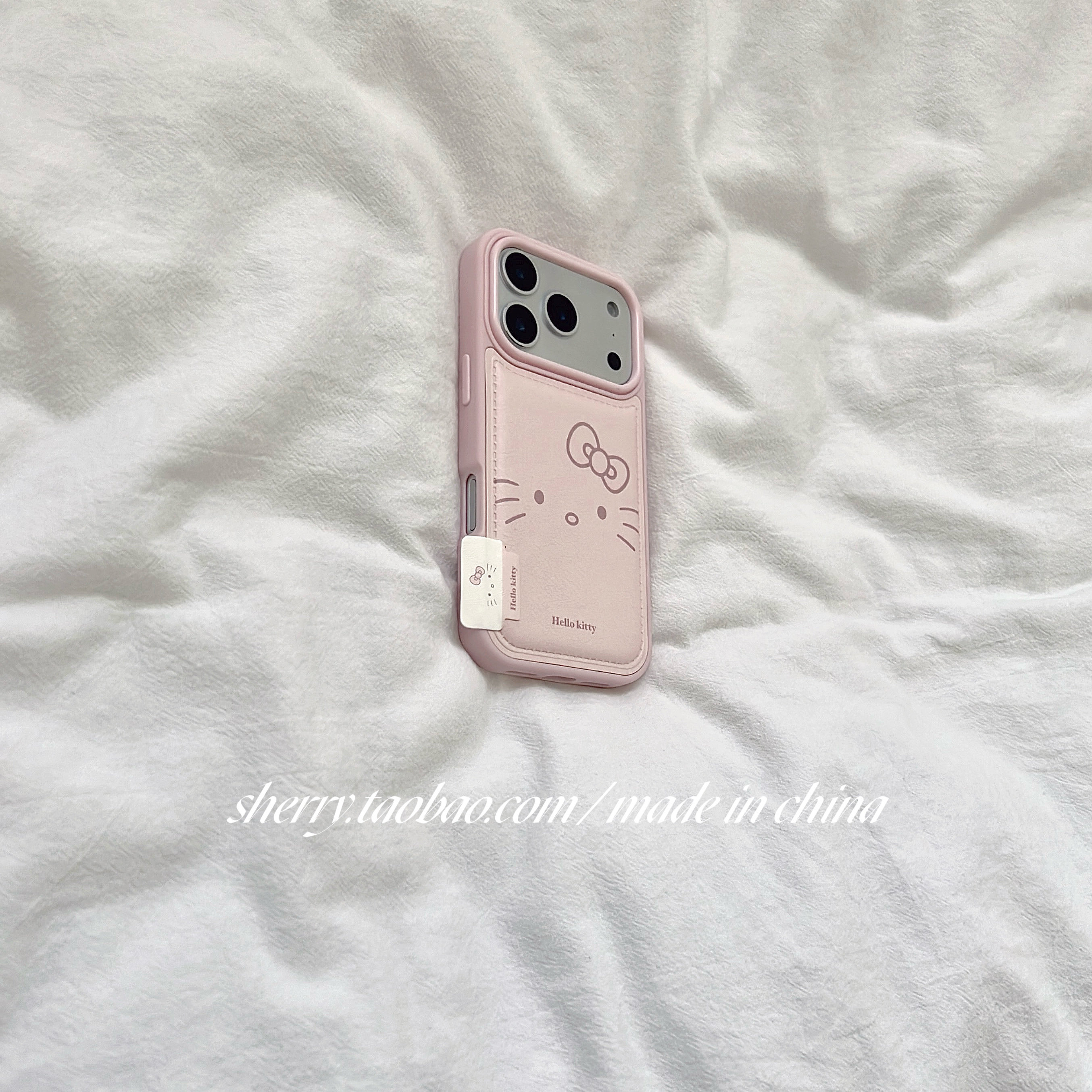 SHERRY*ins风粉色仿皮可爱kt表情适用于苹果17ProMax手机壳iPhone16Pro小众少女心15简约14小清新卡通高级感