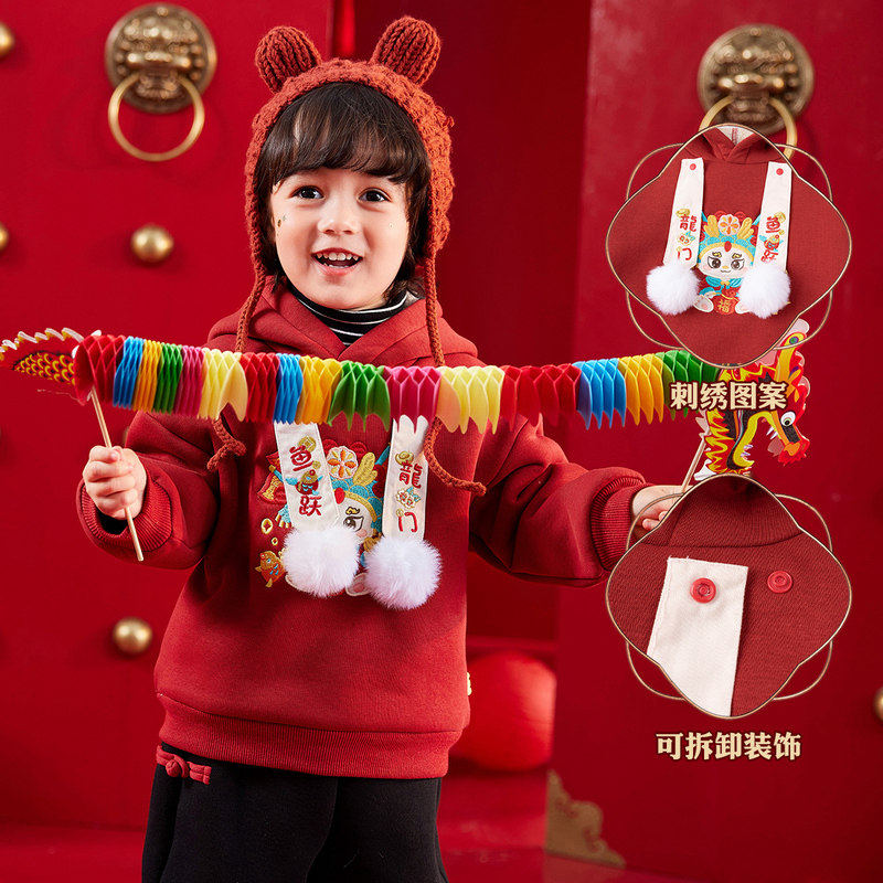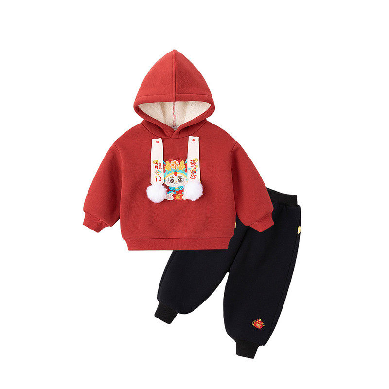 宝宝拜年套装冬款童装儿童过年新衣男童唐装新品女童卡通新年套装