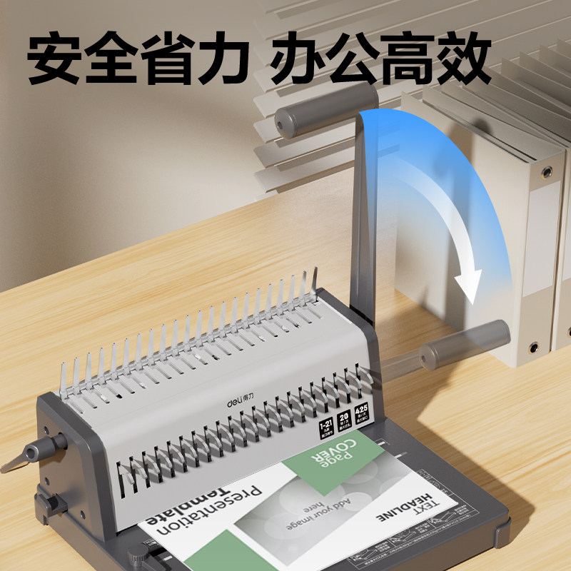 得力3873S装订机 胶圈夹条多孔打孔机梳式21孔文件标书打孔器包邮