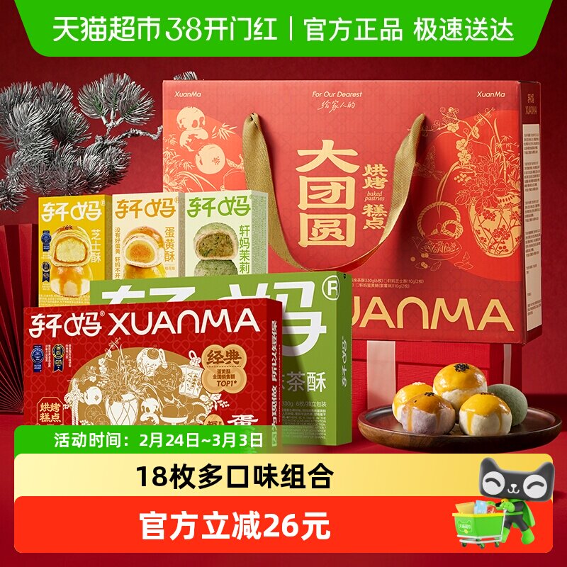 【下拉领优惠】轩妈蛋黄酥送礼节日礼盒糕点礼盒18枚零食大礼包