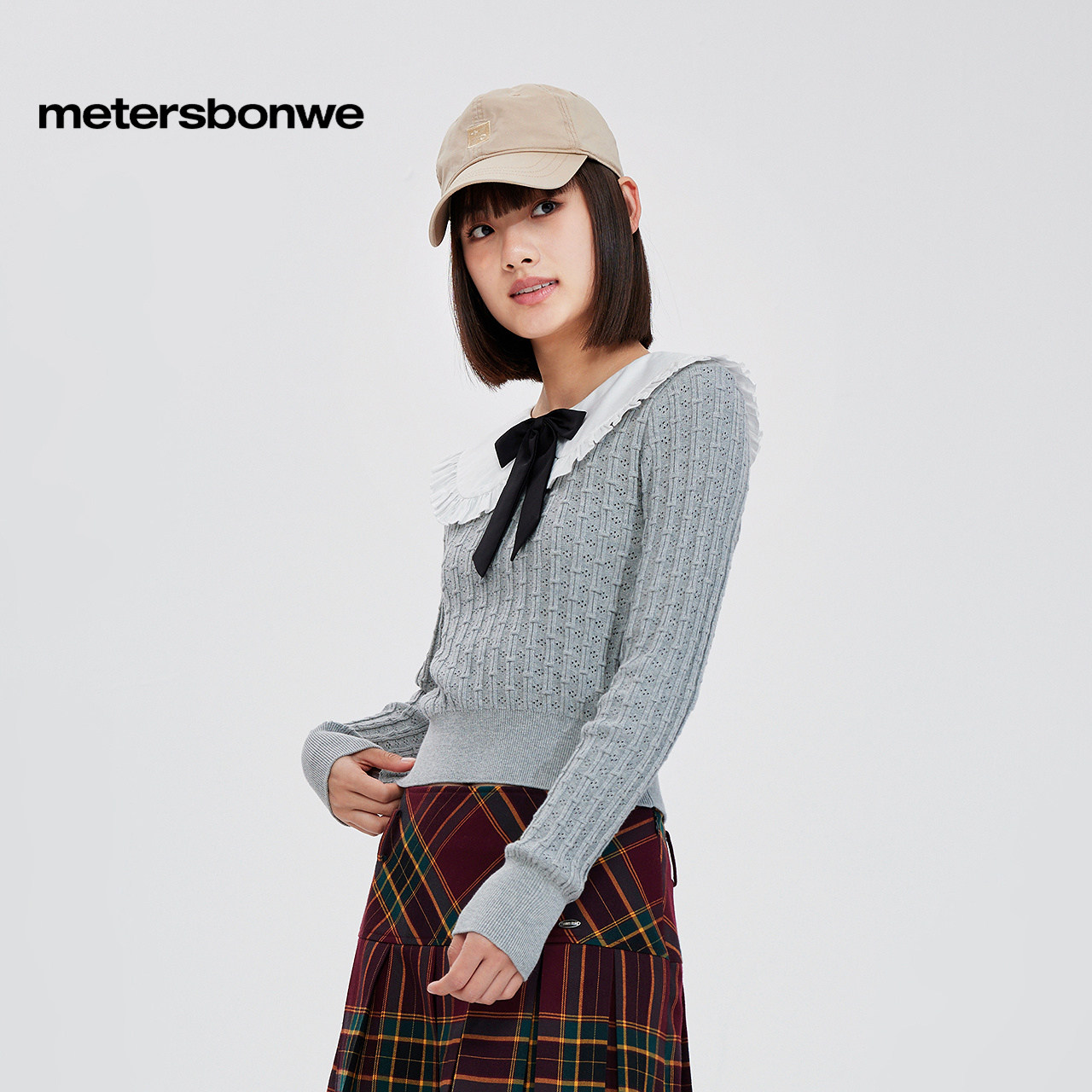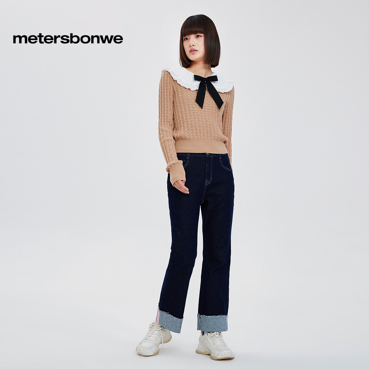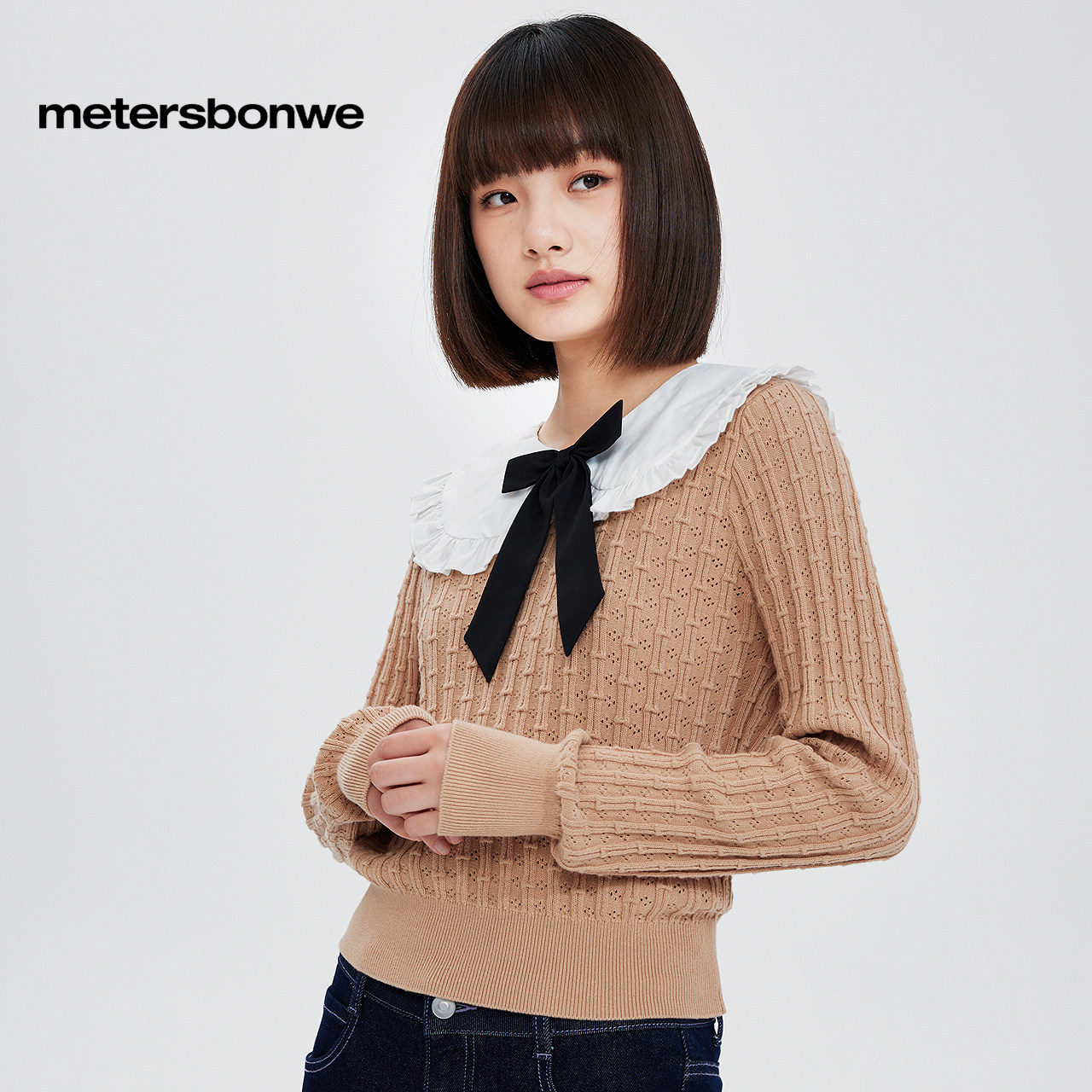 美特斯邦威毛衣女秋冬学院套头娃娃领设计纯色甜美减龄女针织毛衫