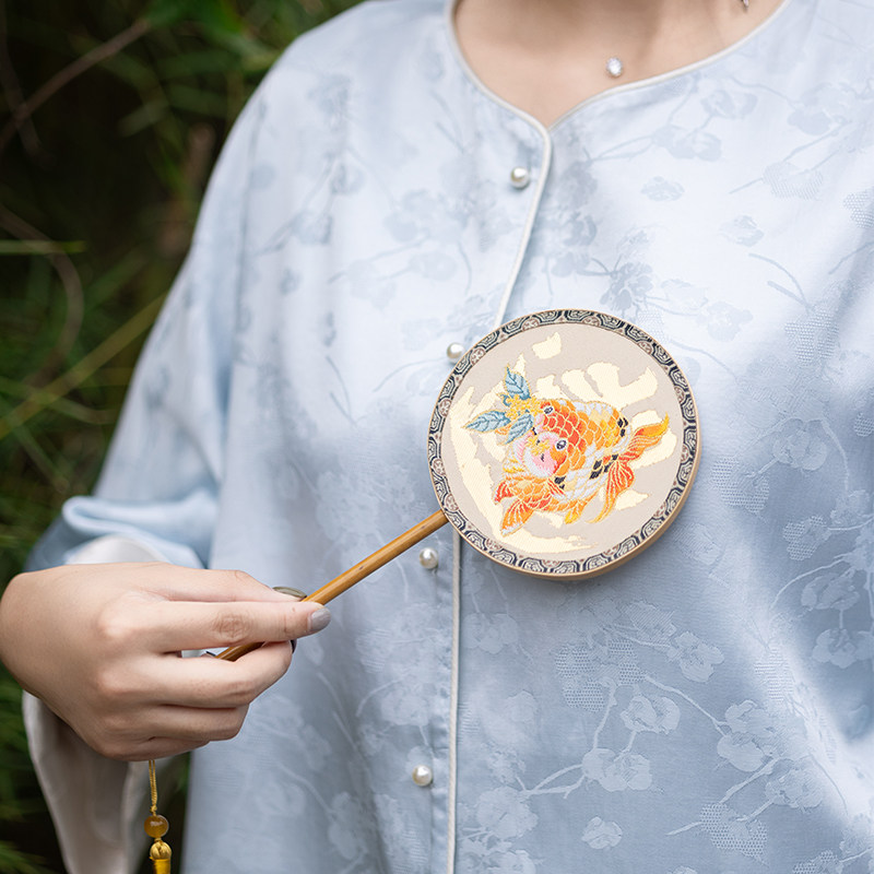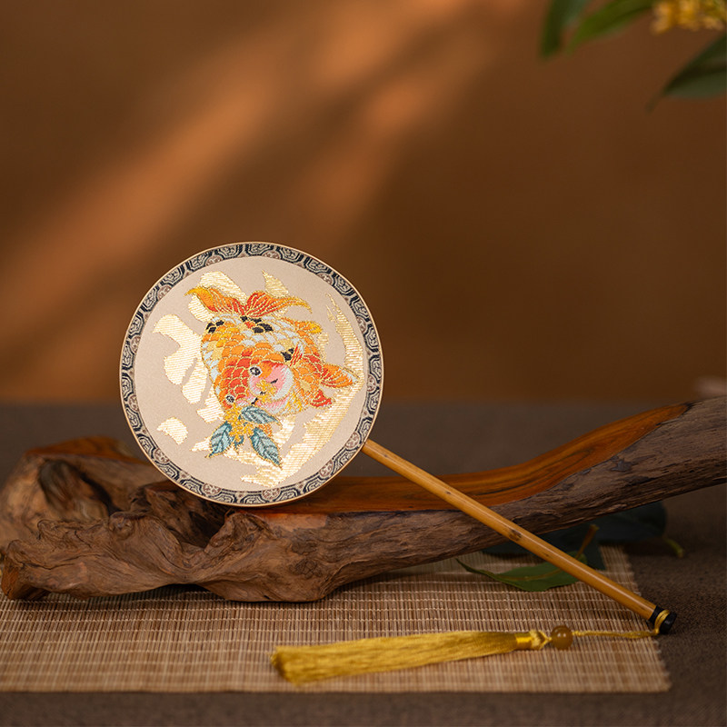 日进斗金南京云锦研究所博物馆团扇新中式迷你小扇汉服便携伴手礼